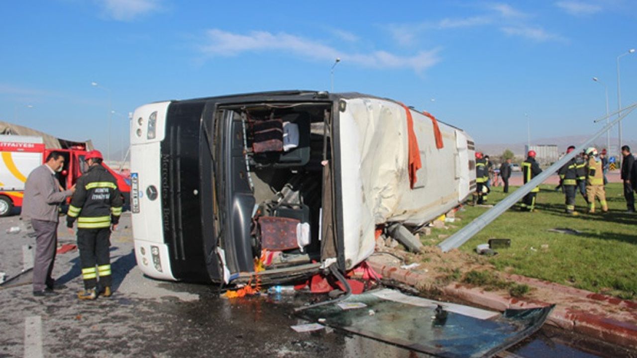 Kaza, saat 07.30 sıralarında Konya-Aksaray karayolu üzerinde bulunan Tümosan Kavşağı'nda meydana geldi. İddiaya göre sürücüsü henüz tespit edilemeyen ve organize sanayi bölgesine işçi götüren 42 FIK 90 plakalı işçi otobüsü, Aslım Caddesi üzerinde karayoluna çıkmakta olan Bahri Alu idaresindeki 02 HP 383 plakalı patates yüklü TIR ile çarpıştı.