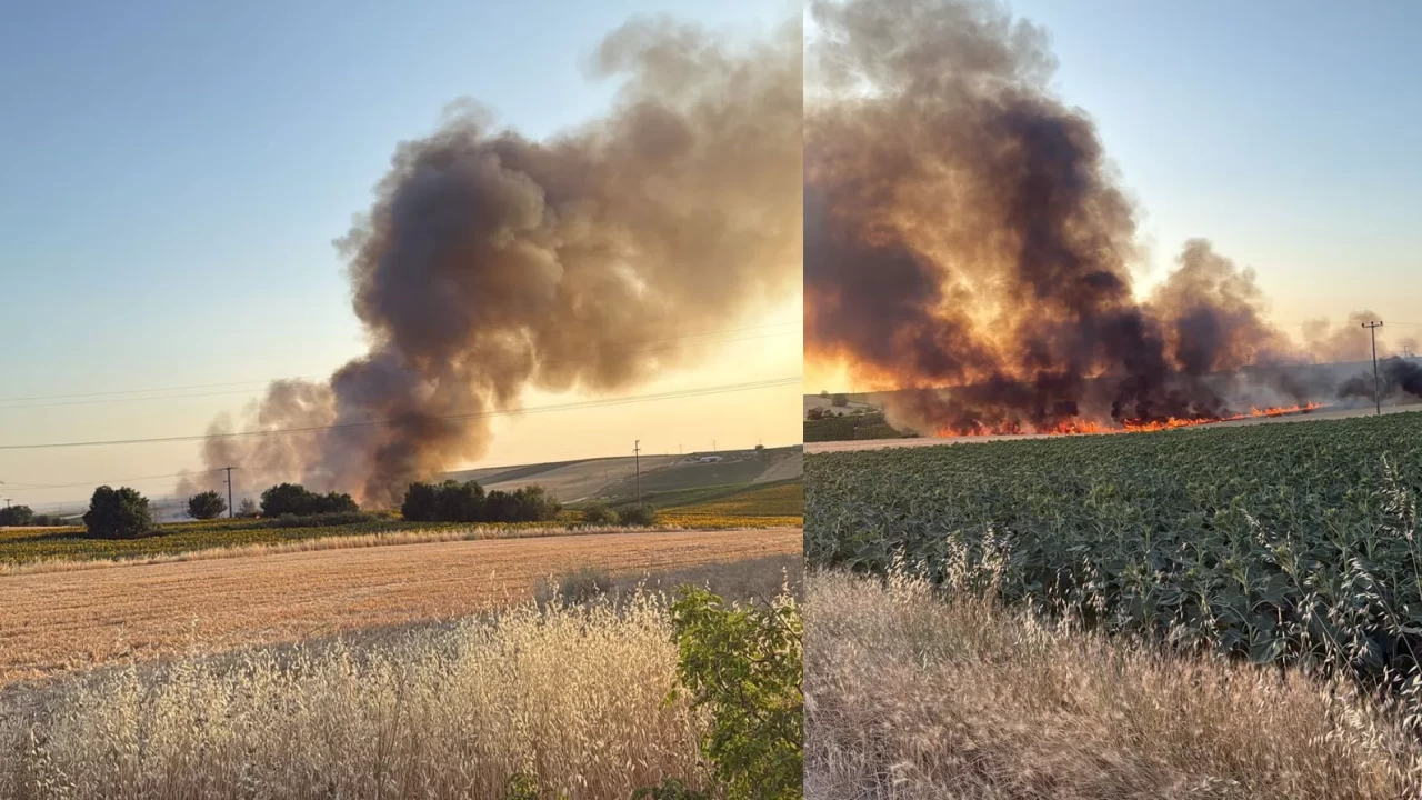 Lüleburgaz'da buğday tarlasında yangın