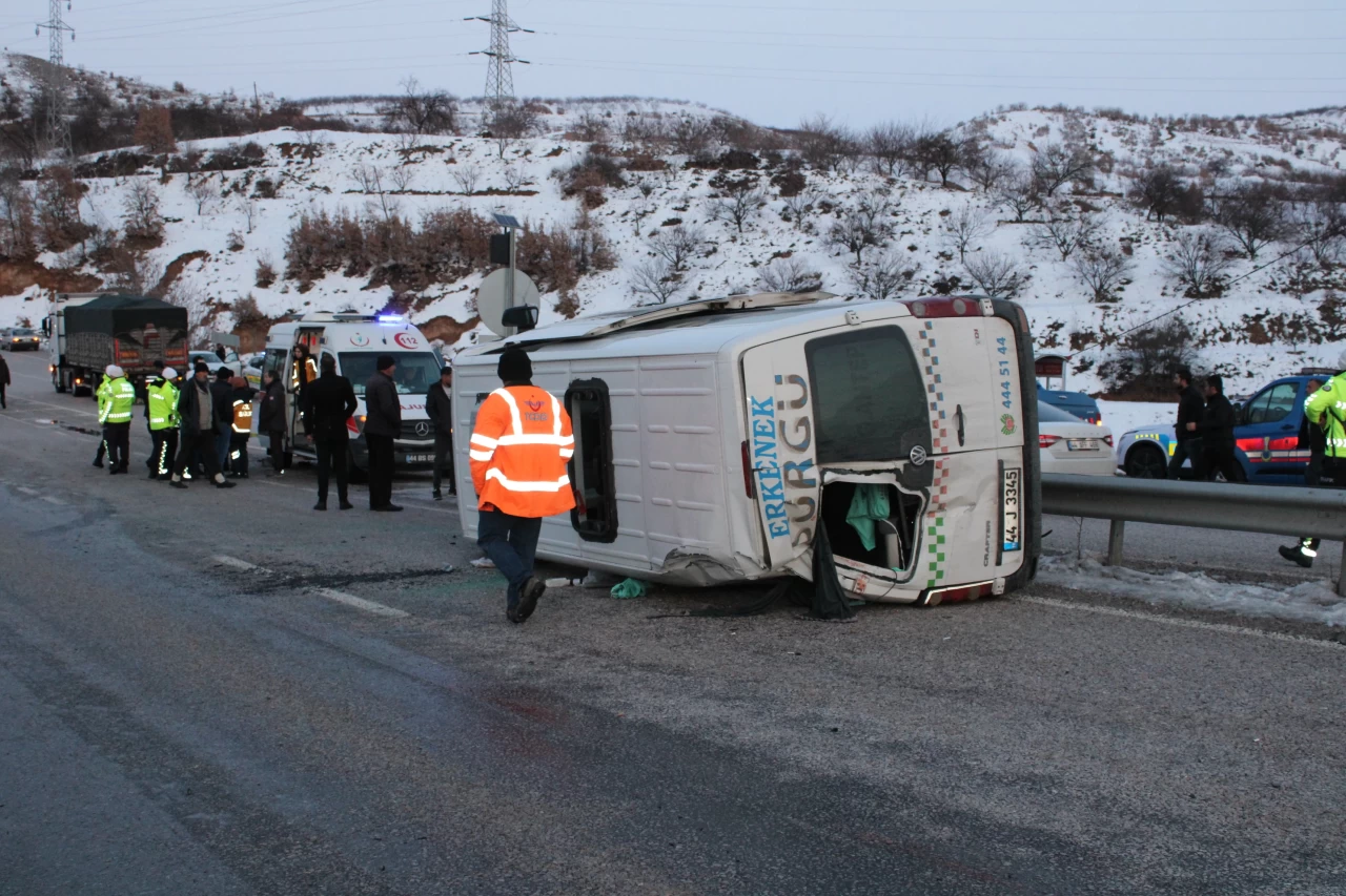 Malatya'nın Doğanşehir ilçesinde, şoförünün kontrolünden çıkan yolcu minibüsünün devrildiği kazada 1'i polis 8 kişi yaralandı.