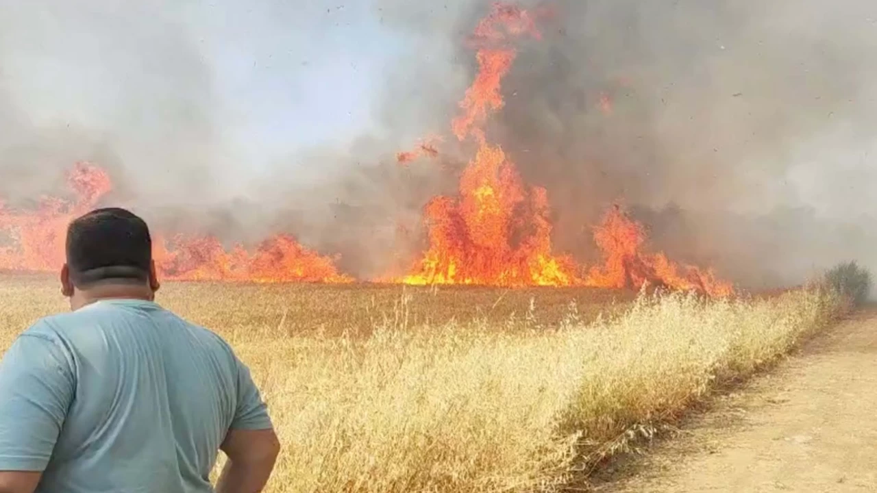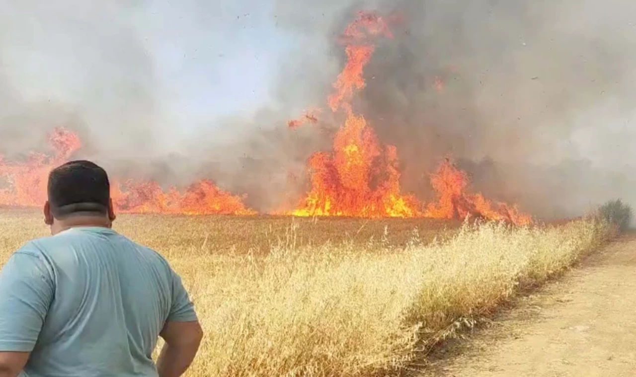 Manisa'da buğday tarlası alev alev yandı