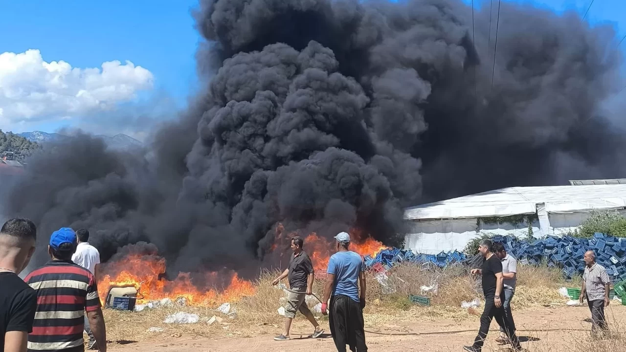 Edinilen bilgiye göre, plastik boş kasaların yer aldığı Tekmen Mahallesi'ndeki bir arazide henüz bilinmeyen bir nedenle başlayan yangın, kısa sürede büyüyerek yoğun is ve kara dumanla mahalle genelini etkisi altına aldı.