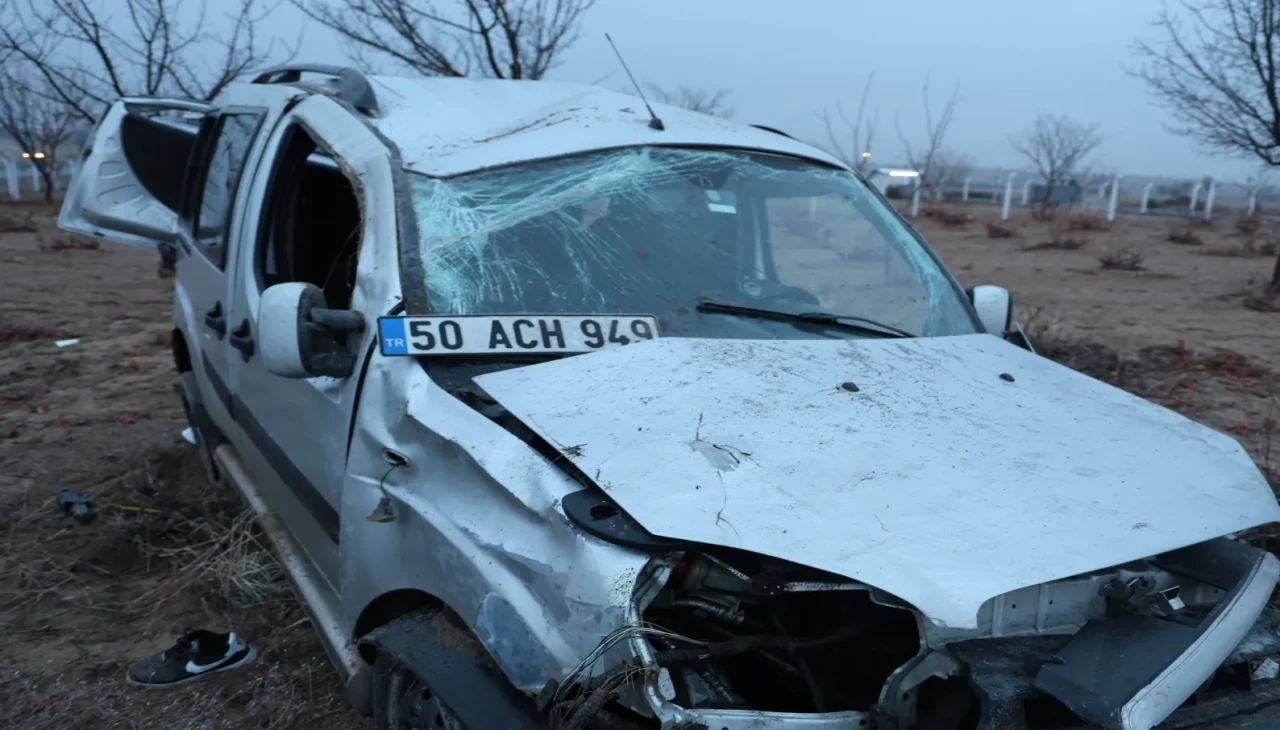 Nevşehir-Gülşehir kara yolunda seyir halinde olan hafif ticari araç, yağışın etkisiyle sürücüsünün kontrolünden çıktı. Kum ocakları kavşağı mevkiinde meydana gelen kazada araç takla atarak yol kenarındaki tarlaya savruldu.