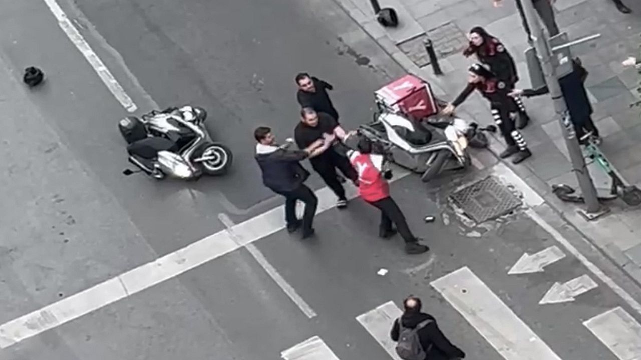 Kısa süre sonra tekrar birbirine giren motosiklet sürücüsü ile kurye caddeyi adeta boks ringine çevirdi.
