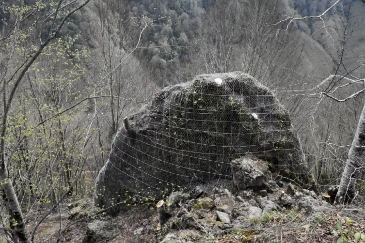 Bölgede tehlike arz eden toplam 1200 metreküp hacme sahip 8 kaya, kaya kırıcı kullanılarak ıslah edildi.