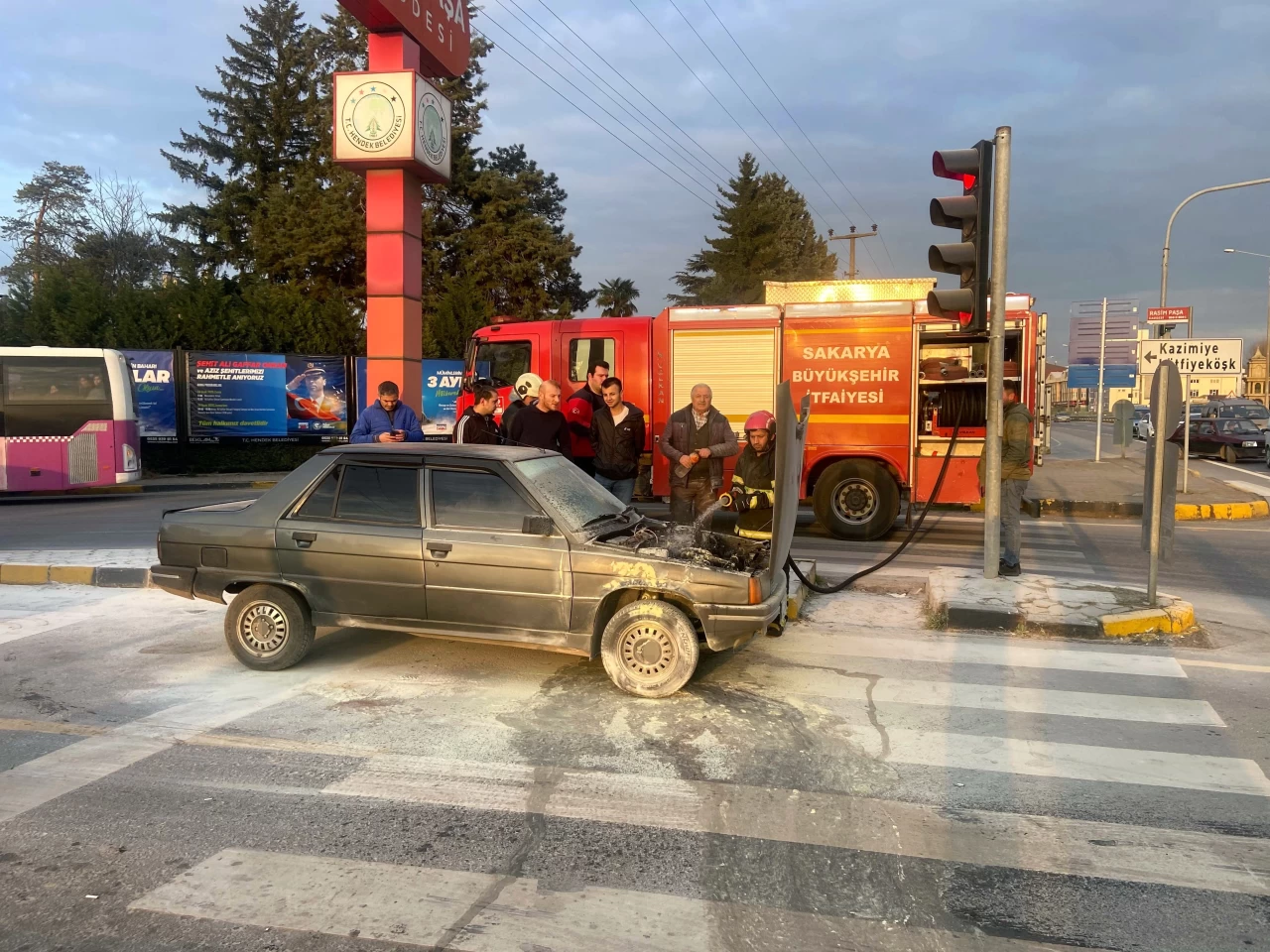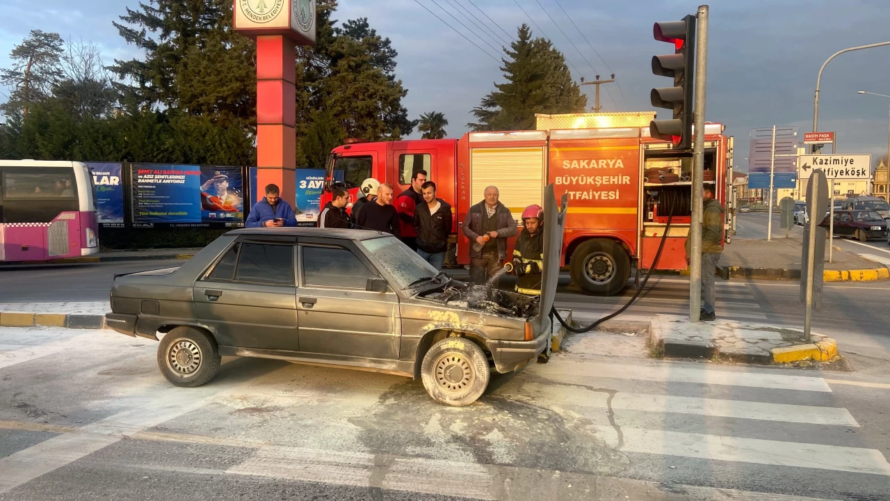 Olay, D-100 karayolu Hendek ilçesi Rasimpaşa ışıkları mevkiinde meydana geldi. Edinilen bilgiye göre, Ali Ç. kontrolündeki 54 E 0011 plakalı otomobil, ışıklarda aniden alev aldı.