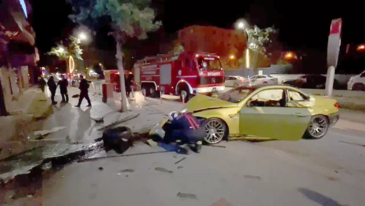 Diğer yandan, kaza anı güvenlik kamerasına yansıdı. Görüntülerde, yolda ilerleyen otomobilin kontrolden çıkarak, kaldırımı aştığı ardından da hızla mağazaya çarptığı görüldü. Bu sırada kaldırımda yürüyen bir kadının ise saniyelerle kazadan kurtulduğu anlar kamerada yer aldı.