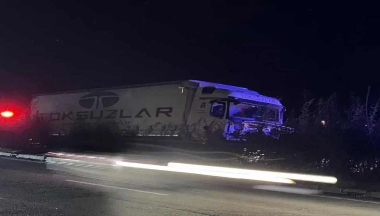 A.D. yönetimindeki tır, henüz belirlenemeyen bir nedenle orta refüjde bulunan aydınlatma direğine çarptı. Çarpmanın ardından olay yerine sağlık, itfaiye ve polis ekipleri sevk edildi.