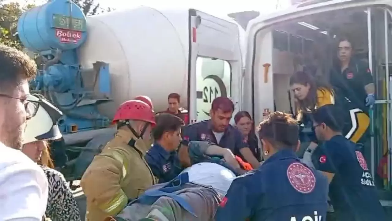 İstanbul Sancaaktepe'de çimento üretim şantiyesinde çalışan işçi beton mikserinin altında kalarak yaralandı.