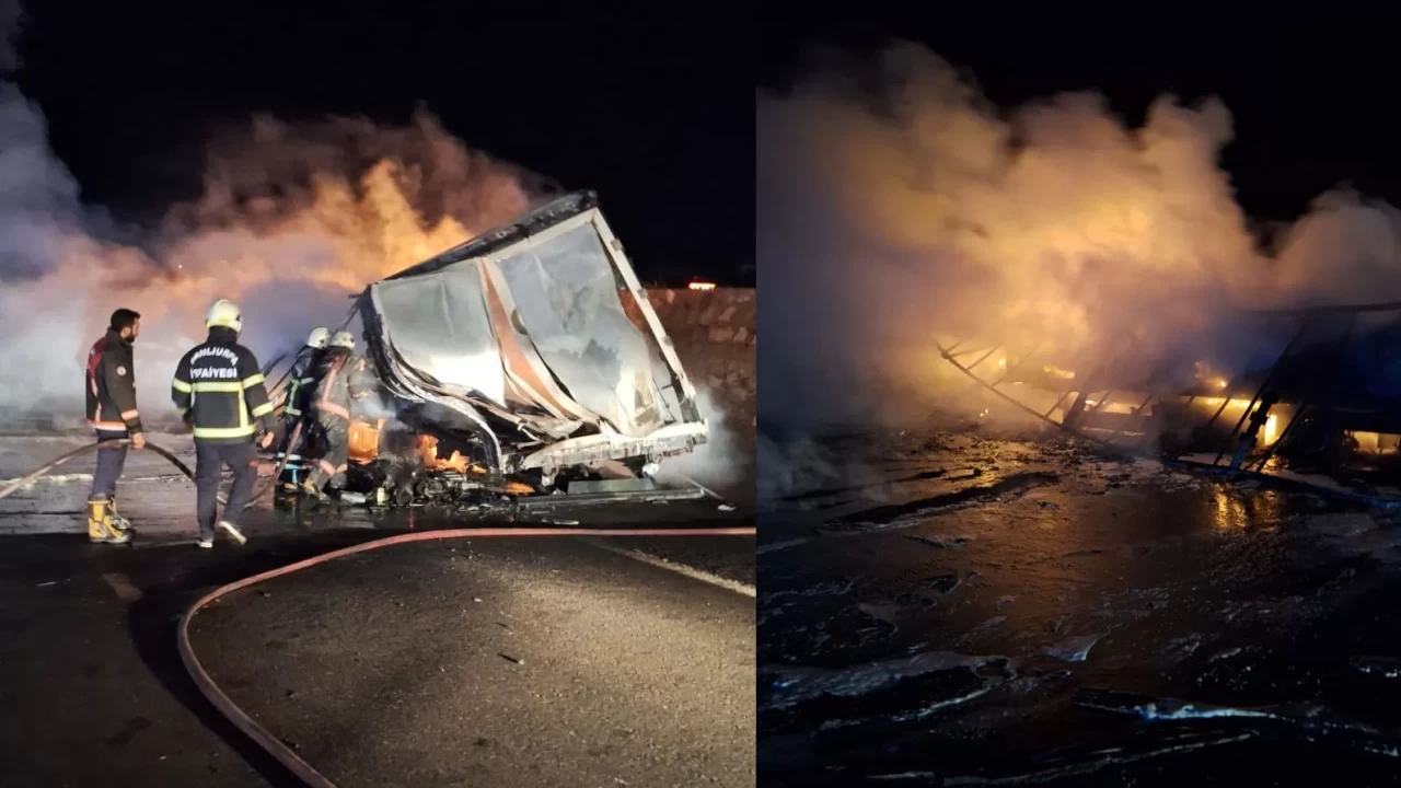 Edinilen bilgiye göre yangın, Şanlıurfa - Gaziantep Otoyolu'nun 70'inci kilometresinde meydana geldi. Seyir halindeki Bünyamin Ö. idaresindeki 27 AGV 738 plakalı tır, henüz bilinmeyen bir nedenle yanmaya başladı. Sürücünün yol kenarına çektiği tır, kısa sürede alev topuna döndü. İhbar üzerine olay yerine giden itfaiye ekipleri, yangına müdahale ederek kontrol altına aldı. Yangın sonrası uluslararası taşımacılık yaptığı belirlenen tır, hurda yığınına döndü. Jandarma ekipleri olayla ilgili inceleme çalışması başlattı.