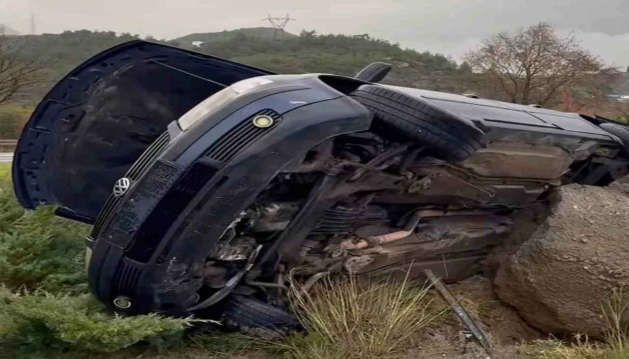 Seyir halindeki otomobil, henüz bilinmeyen bir nedenle sürücüsünün kontrolünden çıktı. Savrulan araç orta refüje çarparak yan yattı. Çarpmanın etkisiyle refüjde bulunan trafik direği de yerinden söküldü.