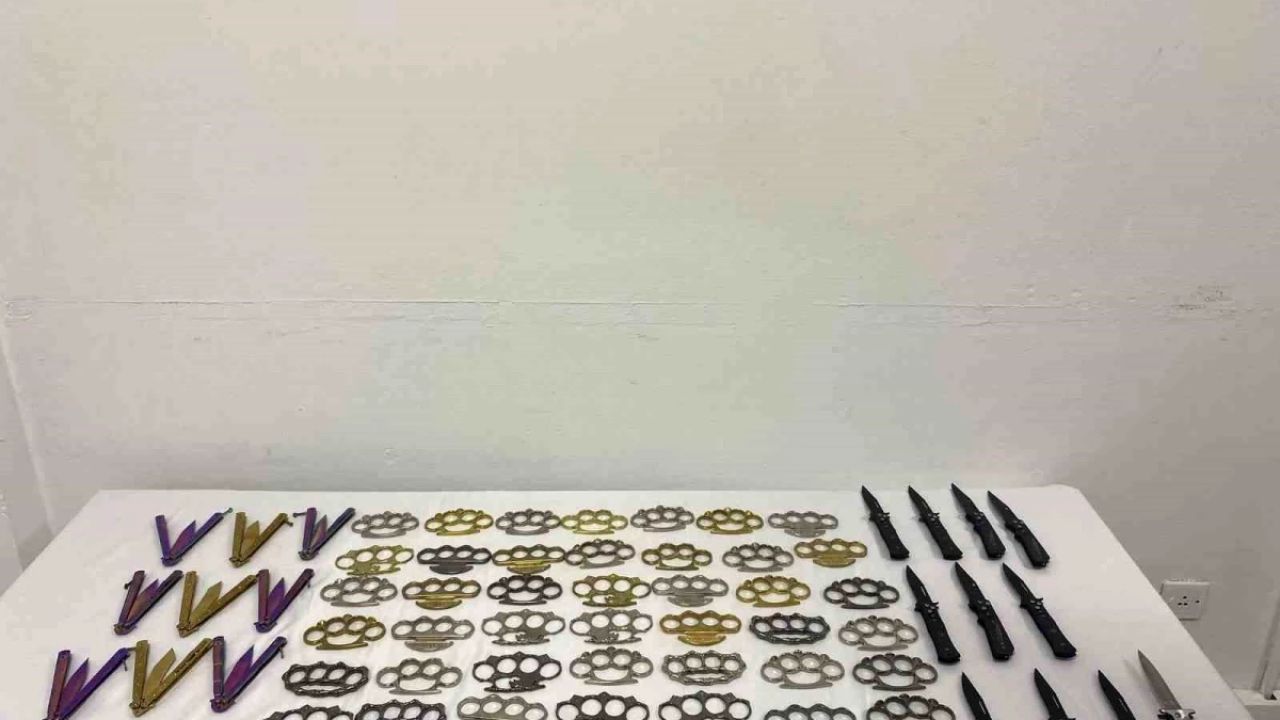 Malkara’nın Kavakçeşme Mahallesi’nde jandarma ekiplerinin önleyici kolluk devriyesi esnasında sürücülüğünü H.P. isimli kişinin yaptığı aracın bagaj kısmında yapılan kontrolde; 50 adet muşta, 11 adet sustalı bıçak ve 11 adet kelebek bıçak ele geçirildi. Şüpheli şahıs ifadesi alınmak üzere gözaltına alındı.