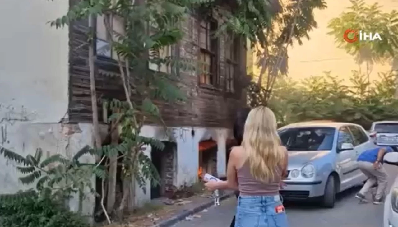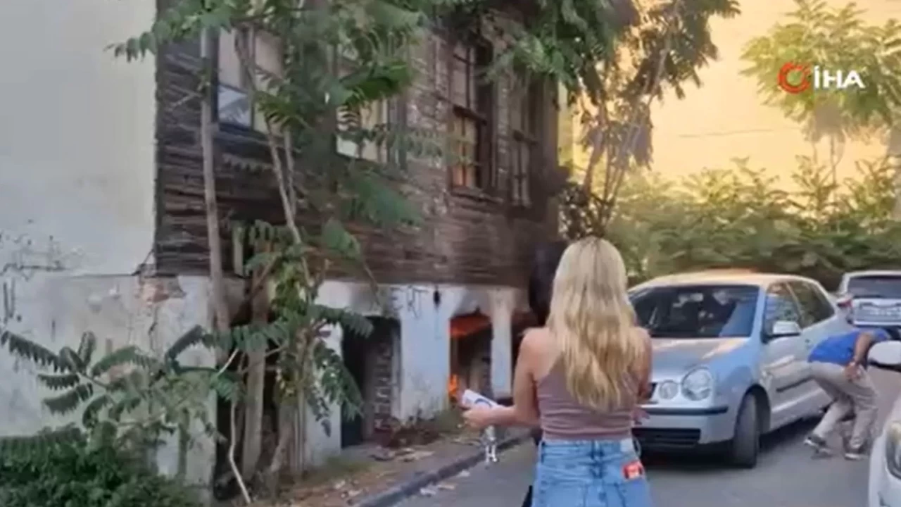Metruk tarihi ahşap binadaki alevler, itfaiye ekiplerinin müdahalesiyle büyümeden söndürüldü. İtfaiye merdivenine de havadan müdahale eden ekipler, yaklaşık bir saatlik soğutma çalması yaptı.