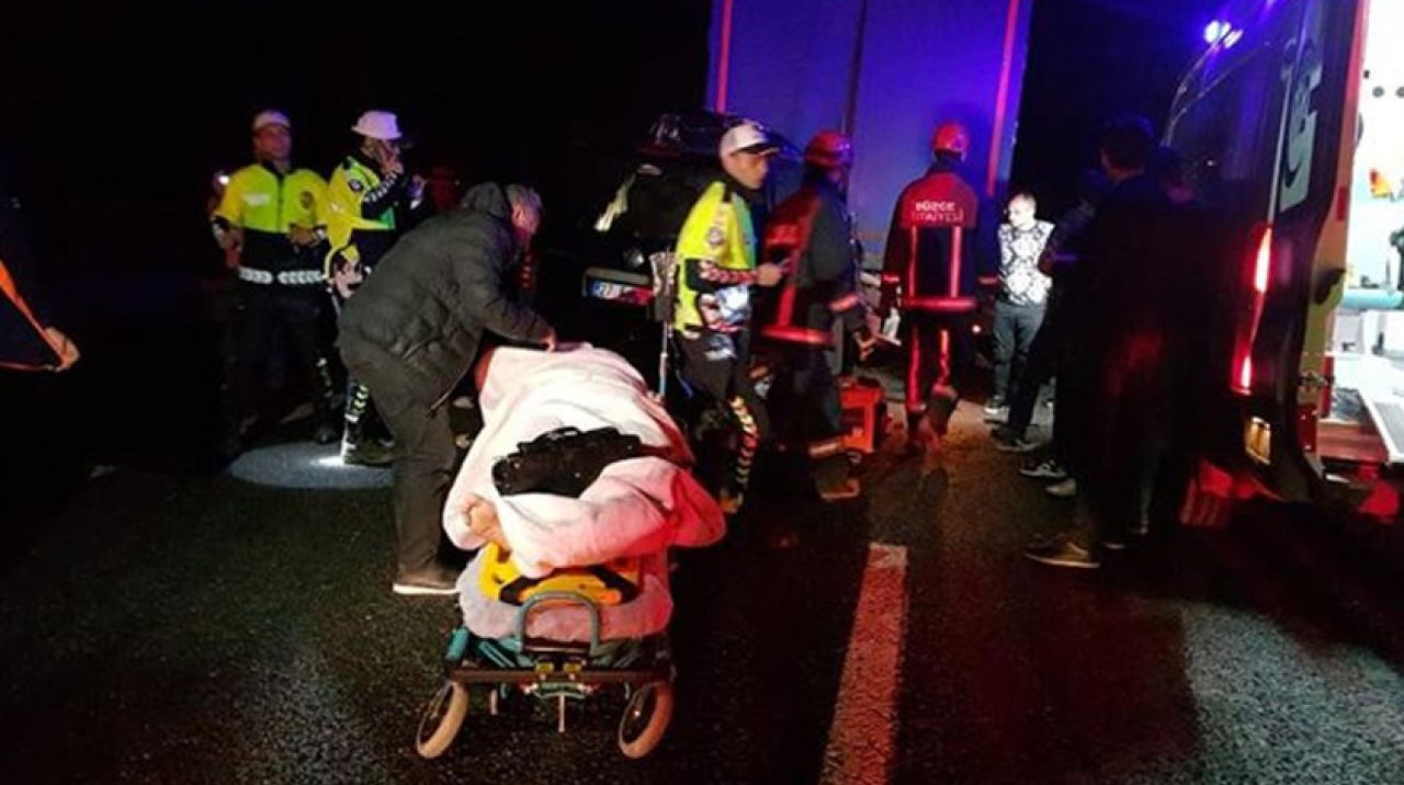 Düzce TEM Otoyolu Gümüşova rampaları mevkiinde tır ile minibüsün karıştığı kazada 5 kişi öldü 2'si çocuk 6 kişi yaralandı.