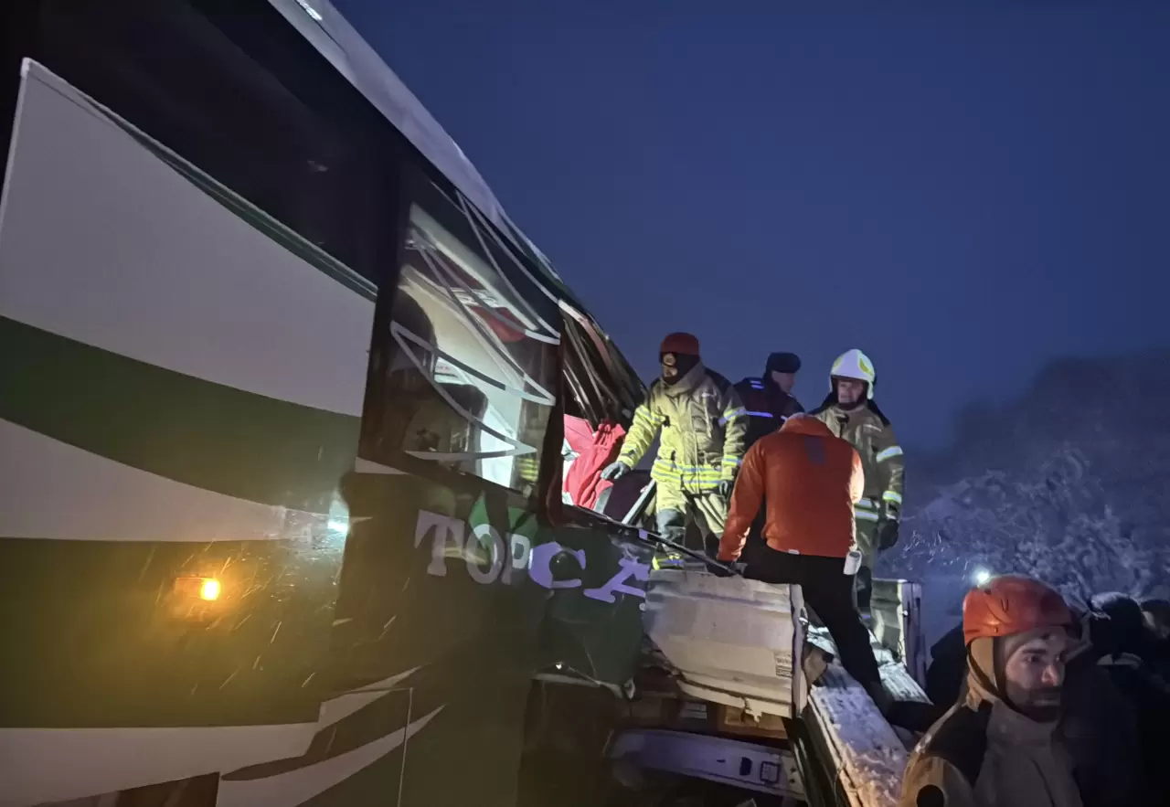 Yetkililer, kazanın meydana geldiği bölgede kar yağışının etkisini sürdürdüğünü belirtirken, yol ve hava koşullarının kazaya neden olmuş olabileceği ihtimali üzerinde duruyor.