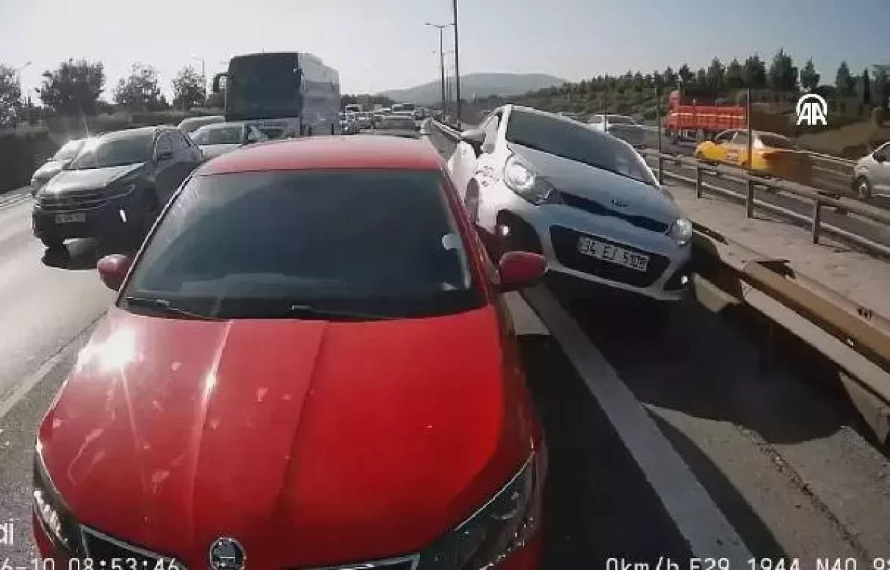 Otoyolun Dudullu mevkiinde trafik nedeniyle duran otomobile arkadan gelen otomobil çarptı. Çarpmanın etkisiyle otomobil, araç ile bariyer arasında sıkıştı.