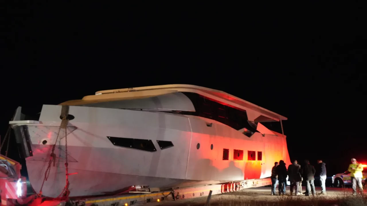 Yol ortasında kalan tır nedeniyle uzun araç kuyrukları oluşurken, karşılarında yat taşıyan aracı gören sürücüler şaşkınlık yaşadı. İhbar üzerine bölgeye trafik ekipleri sevk edilerek güvenlik önlemleri alındı.