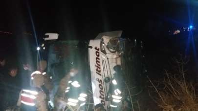 Çanakkale'de alkollü sürücünün kullandığı tır devrilip alev alev yandı