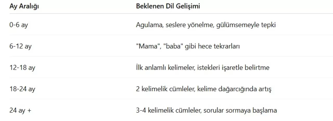 Uzmanlara göre, dil gelişimi doğumla birlikte başlar. Bebekler önce çevre seslerini ayırt etmeyi öğrenir, ardından agulamalarla, daha sonra da heceleri birleştirerek kelimeler üretmeye başlar. Bu süreçte ebeveynlerin rolü oldukça büyüktür.