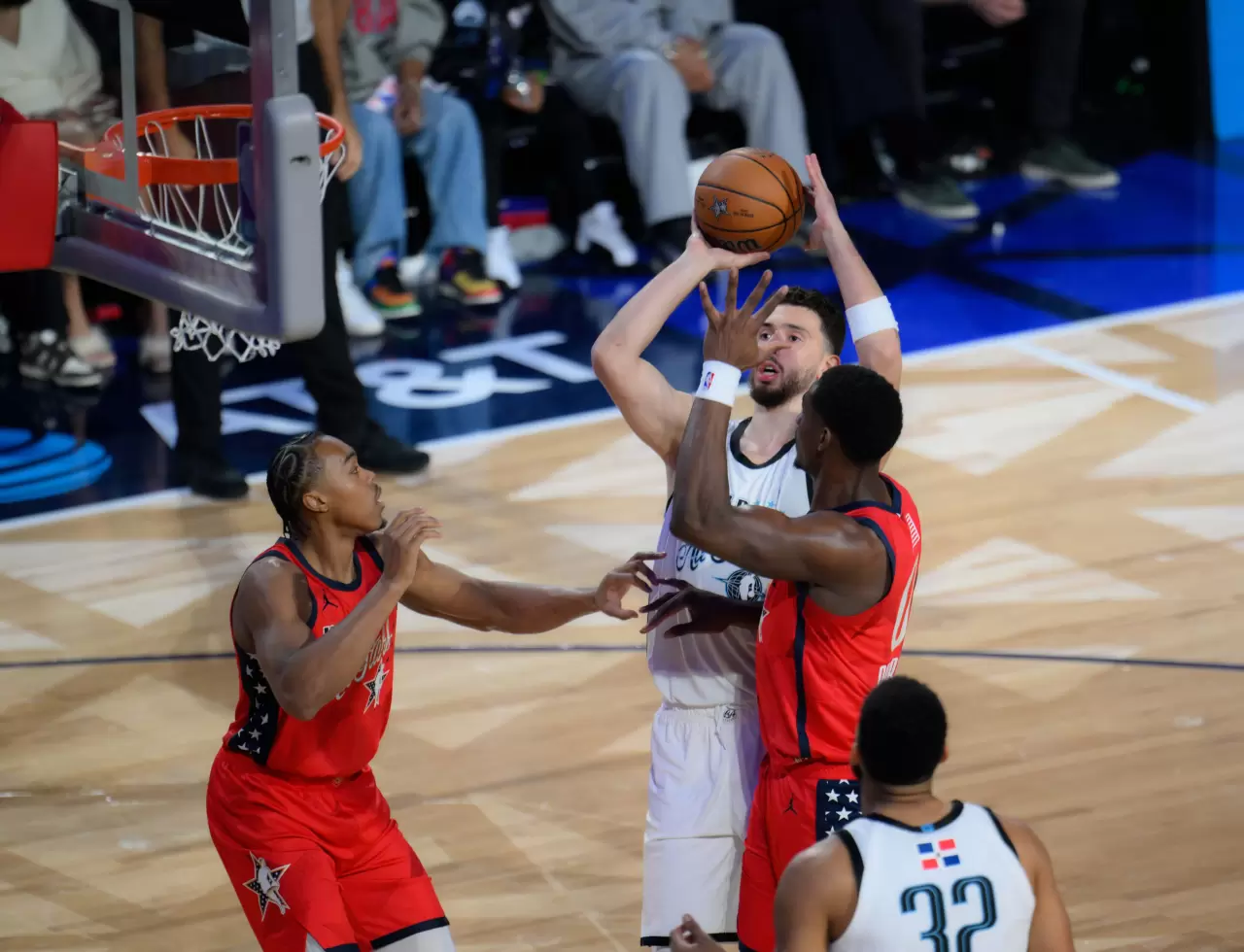 Tyrese Maxey 9 sayı, Anthony Edwards ve Chet Holmgren 8'er sayıyla galibiyete katkı sağladı. USA Stripes'ta ise Donovan Mitchell 6, LeBron James 5 sayı kaydetti.