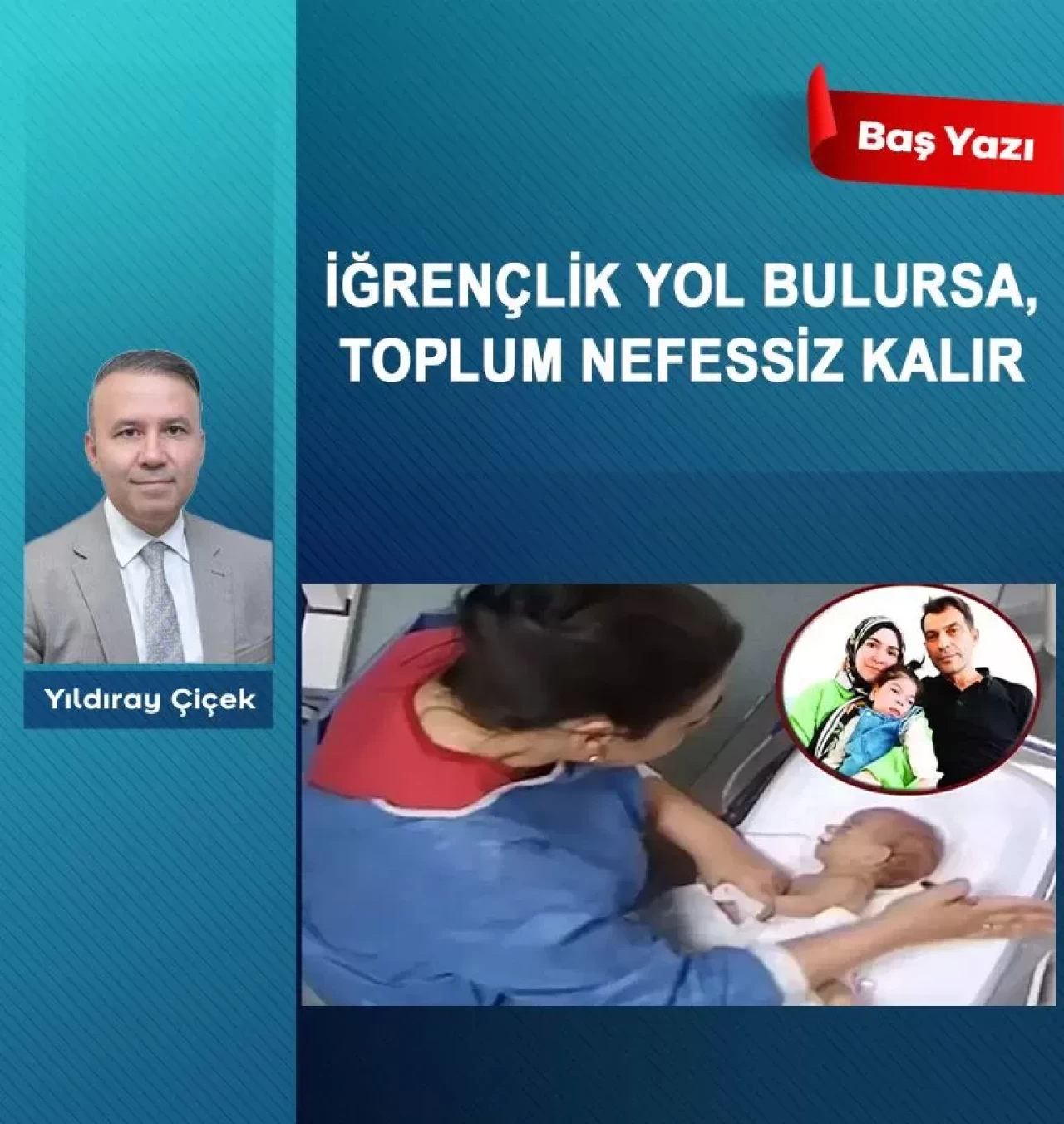Toplum bozuluyor, bireyler bozuluyor. Ne yazık ki, bunu kimse inkâr edemez. Her meslek grubunda ve her alanda bu tabloyu görmek mümkündür. Üstelik iletişim çağında teknolojik sunumların artması, bu bozulmayı adeta gözlerimizin önüne seriyor. Günlük hayatta vicdanı, merhameti ve Allah korkusunu terk etmiş insan manzaralarına şahit oluyoruz. Tertemiz ana kuzularını öldürerek ocaklara ateş düşüren çirkin ruhlu katiller zaten toplumda tepki unsuru iken, geçtiğimiz günlerde Kahramanmaraş’ta bir hastanede hemşire olarak çalışan şeytan ruhlu bir kadının 5 günlük bir bebeğe uyguladığı şiddetin videosu ortaya çıktı. Bu olay, toplumda büyük infial yarattı.