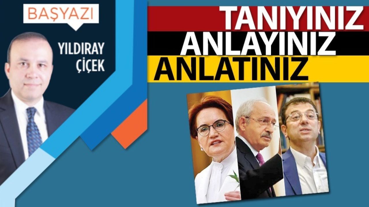 Mesela, Meral Akşener’in böyle bir profili olan Kemal Kılıçdaroğlu’na “Kemal Kılıçdaroğlu'na dua ediyorum, Allah yardımcısı olsun” diyerek her konuda destek verdiğinde kanına dokunmayanlar, MHP Lideri Devlet Bahçeli’nin “Tanıyınız, anlayınız, anlatınız” sözlerine mi kulp takmaya çalışıyor?