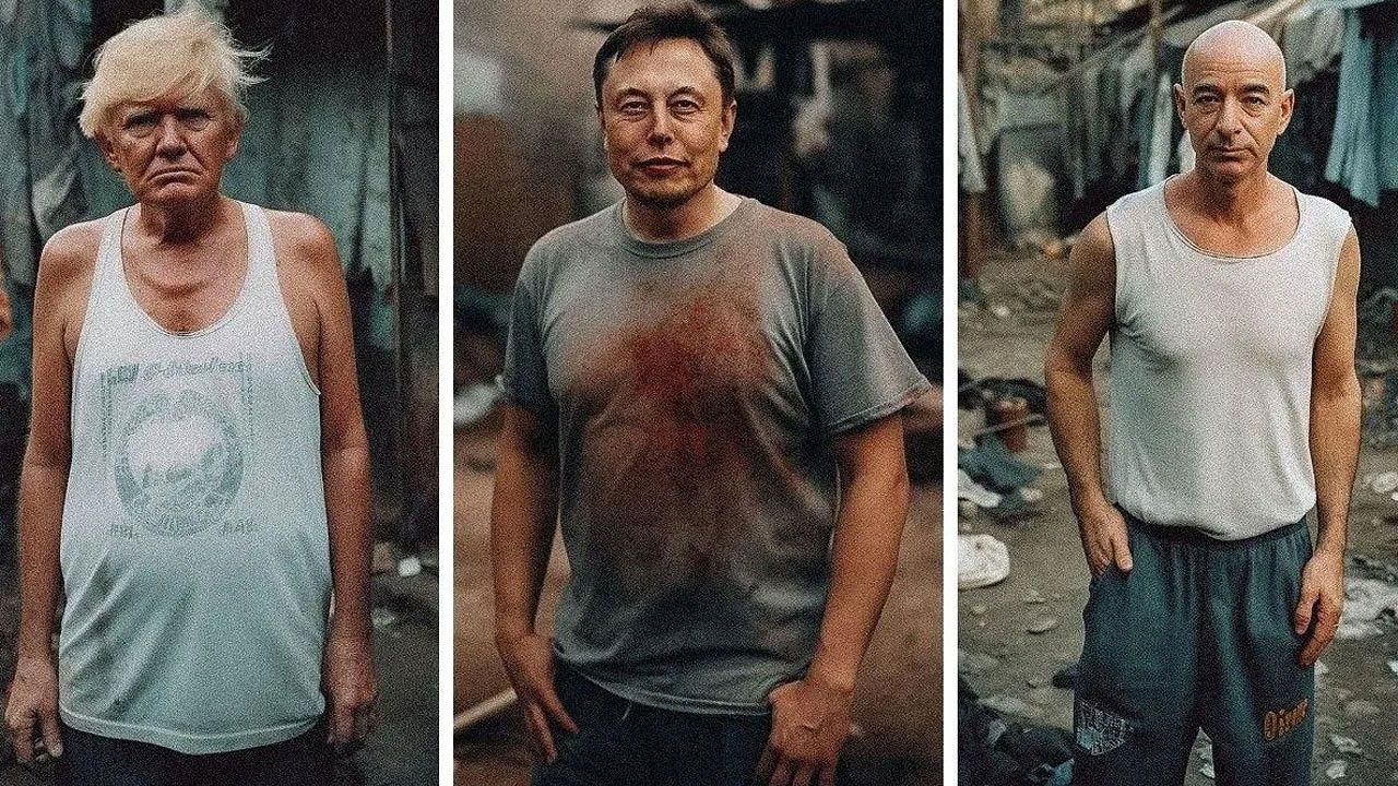 Hintli bir görsel sanatçı Elon Musk'tan Mukesh Ambani'ye, dünyanın en zengin kişilerini yoksul olarak hayal ederek yapay zeka aracılığıyla ünlü milyarderlerin portrelerini yaptı.