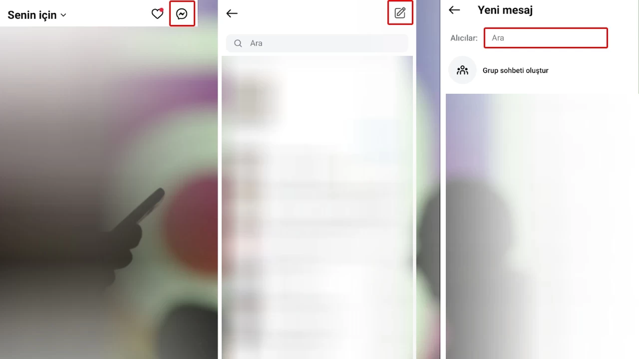 İlk olarak Instagram uygulamanızı açın ve sağ üst köşede bulunan sohbet balonu simgesine dokunarak DM (direct message) kısmına girin. - Mesaj Göndereceğiniz Kişiyi Seçin: