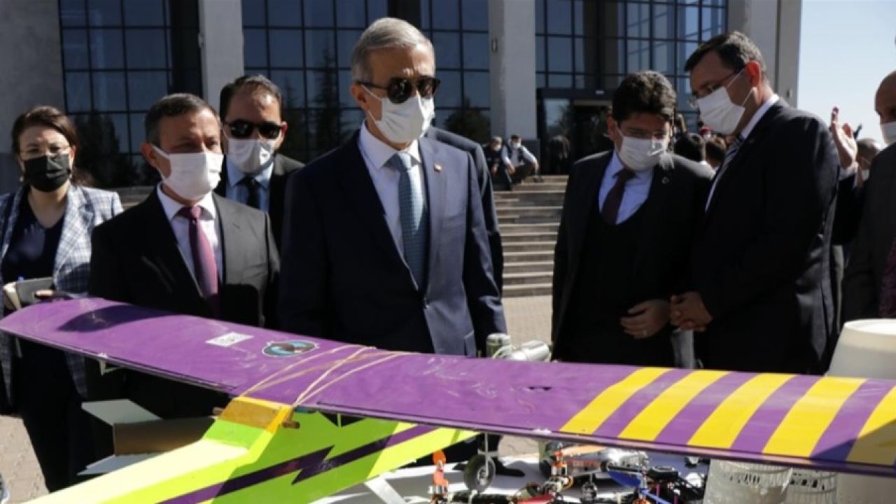 Demir, buluşma öncesi rektörlük bahçesinde çoğunluğu mühendislik fakültesi öğrencileri tarafından tasarlanmış ve TEKNOFEST'e de katılmış araçları, drone ve roketleri inceledi.