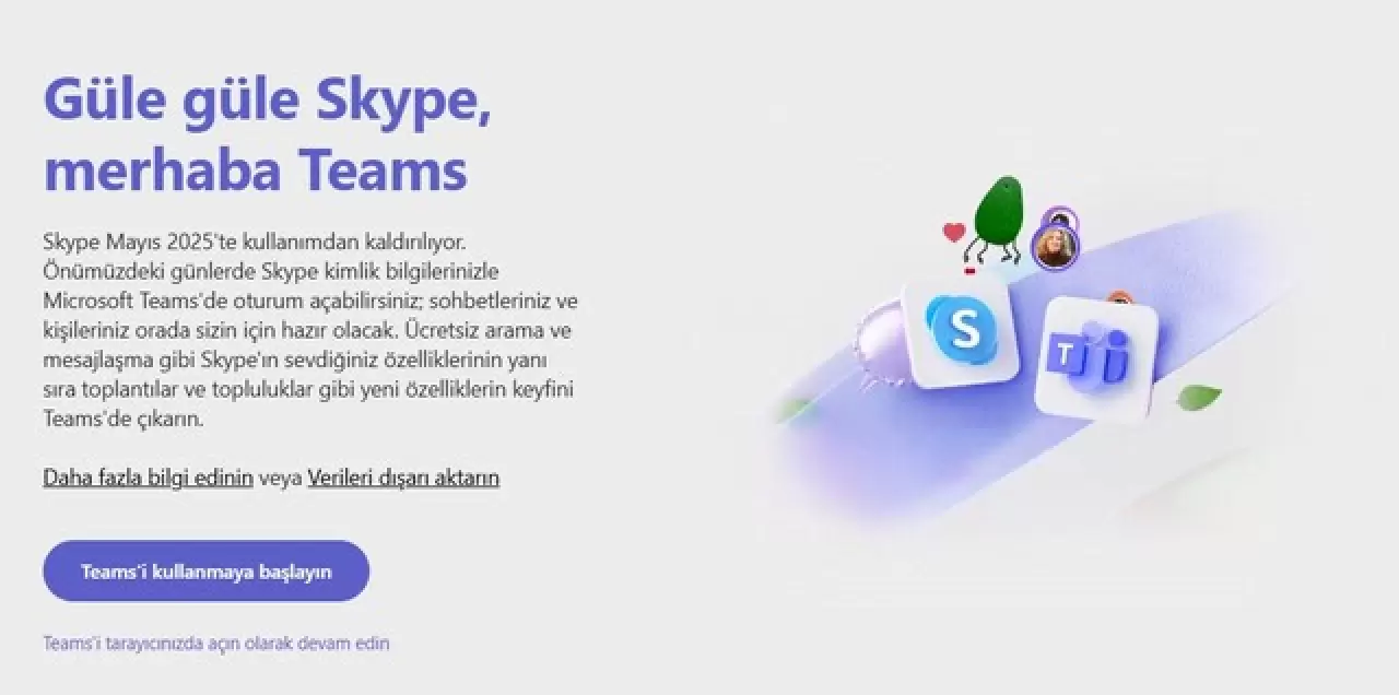 Skype’ın resmi internet sitesinde yer alan veda mesajında “Güle güle Skype, merhaba Teams” ifadesine yer verildi. Microsoft, bu dönüşümle birlikte daha kapsamlı ve kurumsal çözümler sunmayı hedefliyor.