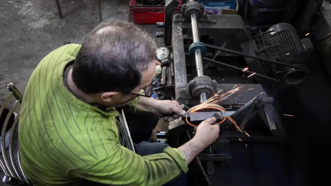 Ramazan Bayramı'ndan sonra başlayan hummalı çalışmada kurban bıçağı taleplerini karşılamak için çaba gösteren esnaf, önce makasla çelik ham maddeyi şekillendiriyor. Damgalama ve ısı işleminin ardından parlatma, sap takma ve bilemeyle bıçaklar kullanıma hazır hale getiriliyor.