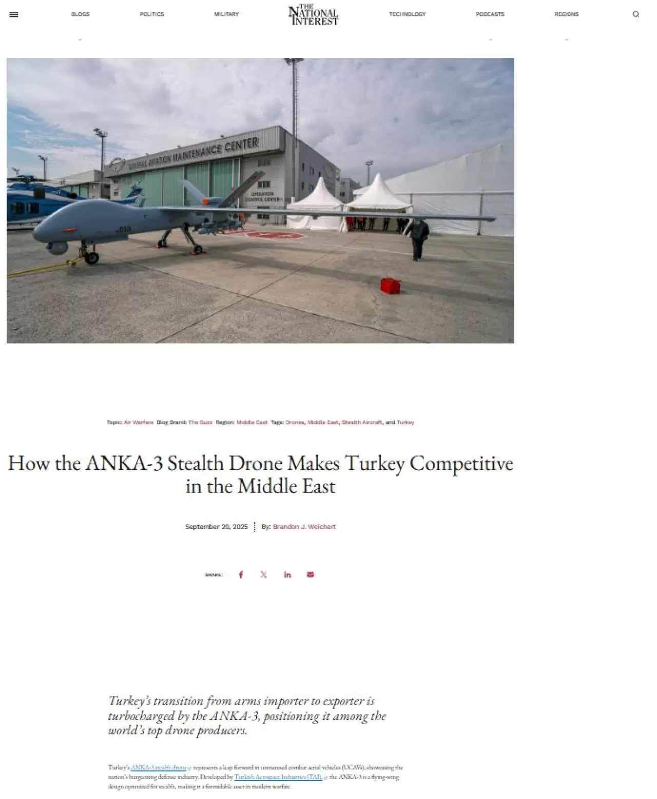 ABD merkezli National Interest dergisi, ANKA-3'ü konu alan bir makale yayımladı.