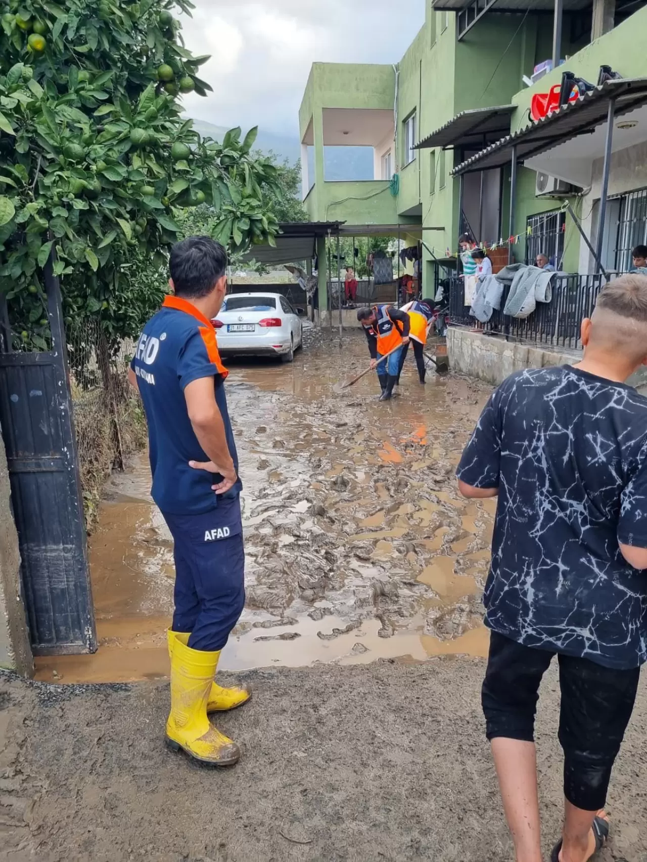 Açıklamada, AFAD koordinasyonunda Hatay Valiliği, Büyükşehir Belediyesi, DSİ, Karayolları, Kızılay, ilçe belediyeleri ve sivil toplum kuruluşlarından oluşan 561 personel ve 152 aracın bölgede görev yaptığı aktarıldı. Ayrıca, AFAD gönüllüleri ve belediye ekiplerinin de yer aldığı 95 kişilik ekip tarafından selden etkilenen evlerde temizlik çalışmaları yürütüldü.