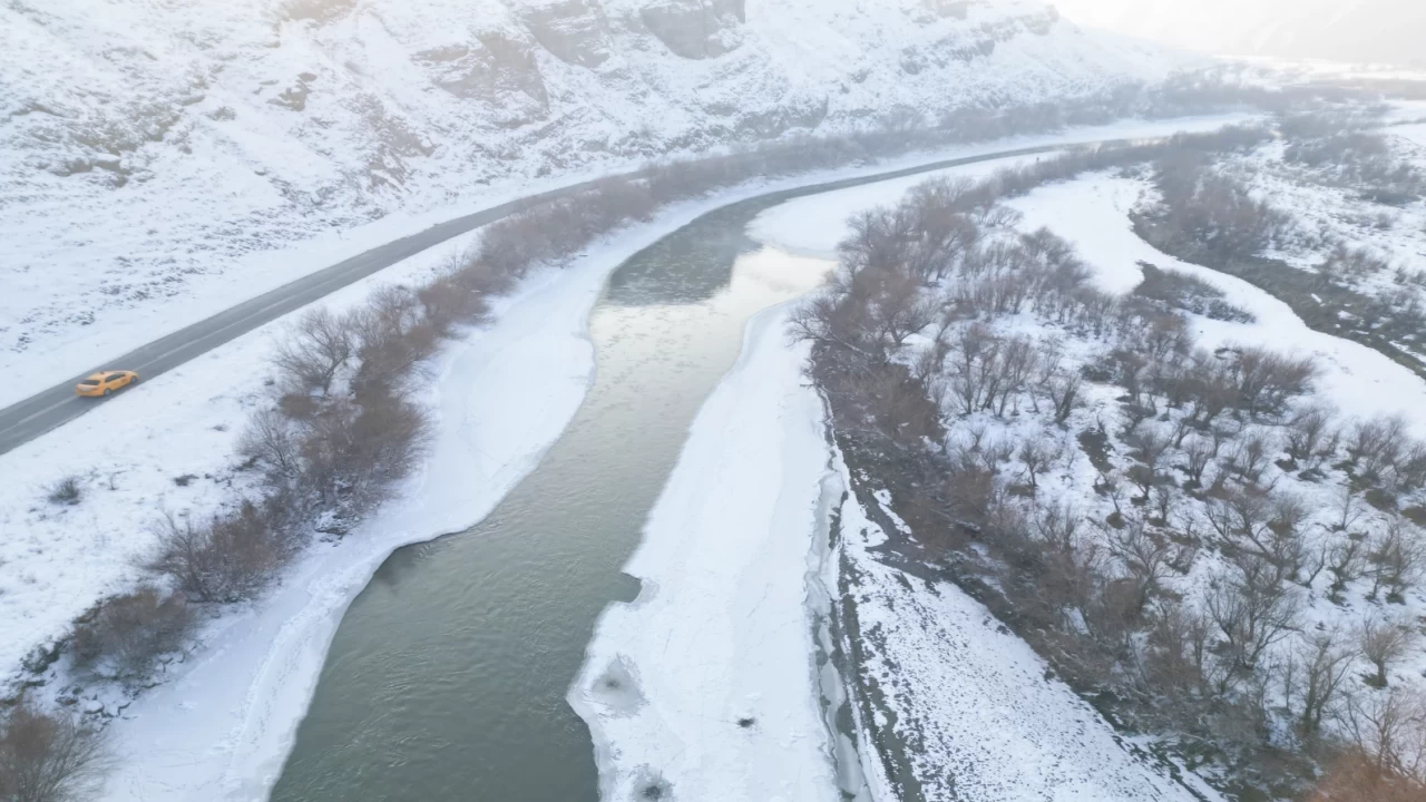 Geceleri etkisini artıran soğuk hava, nehir ve çevresinde kartpostallık manzaralar oluşturdu. Kar ve buzla kaplanan bölge, dron ile havadan görüntülendi. Nehrin donmuş yüzeyi ve çevresindeki ağaçların kırağıyla kaplanması, görsel bir şölen sundu.