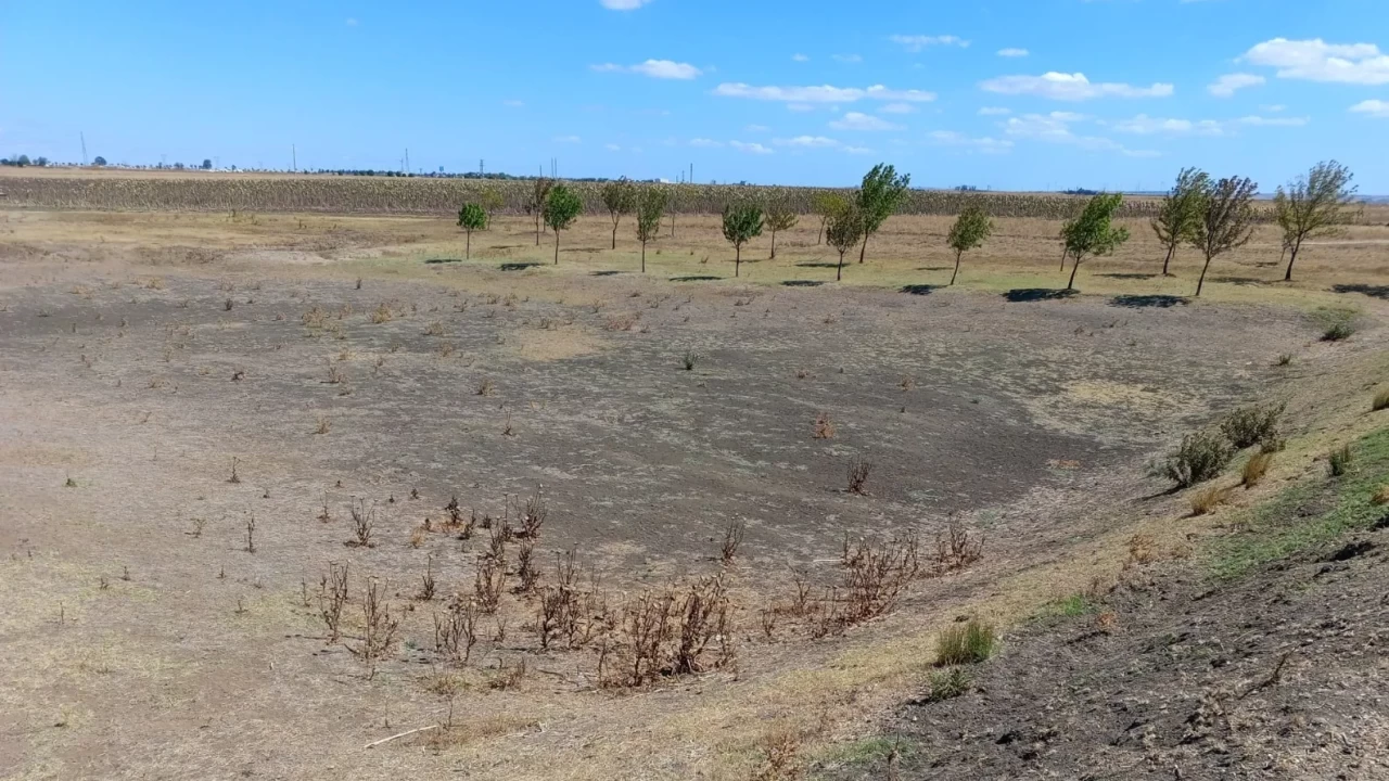 Tekirdağ'ın Muratlı ilçesi Ballıhoca Mahallesi'nde bulunan sulama göleti, kuraklık ve yüksek sıcaklıklar sebebiyle tamamen kurudu.