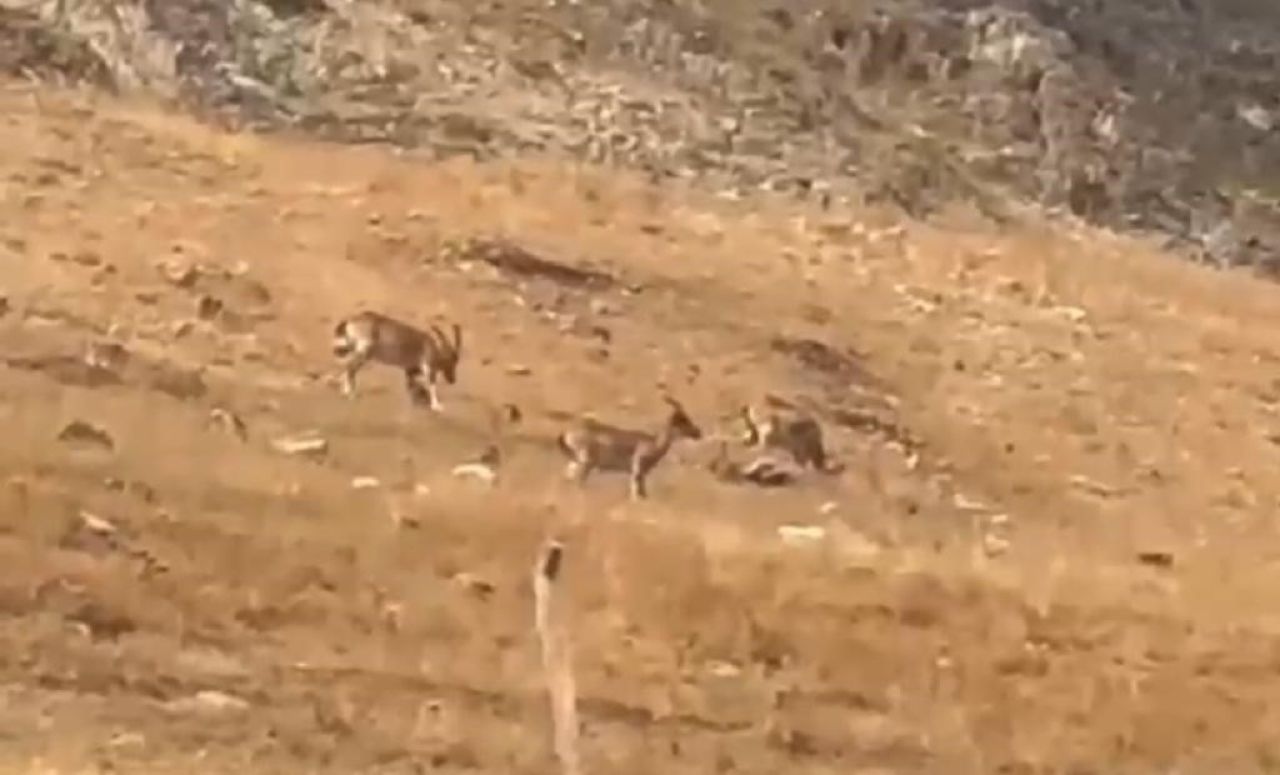 Ergani ilçesi Makam Dağı’nda sabah saatlerinde yerleşim yerine yakın alana gelen yaban keçileri sürü halinde otladı. Bu sırada bölgede bulunan bir vatandaş, keçileri cep telefonu kamerasıyla görüntüledi.