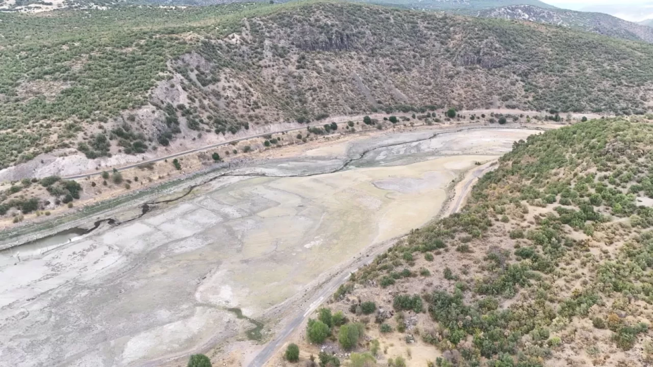 Doğanözü Barajı’nda yaşanan kuraklığın boyutu dron ile havadan görüntülendi. Barajda kuruyan alanlarda ise derin çatlaklar ve küçük su birikintilerinin kaldığı görüldü.