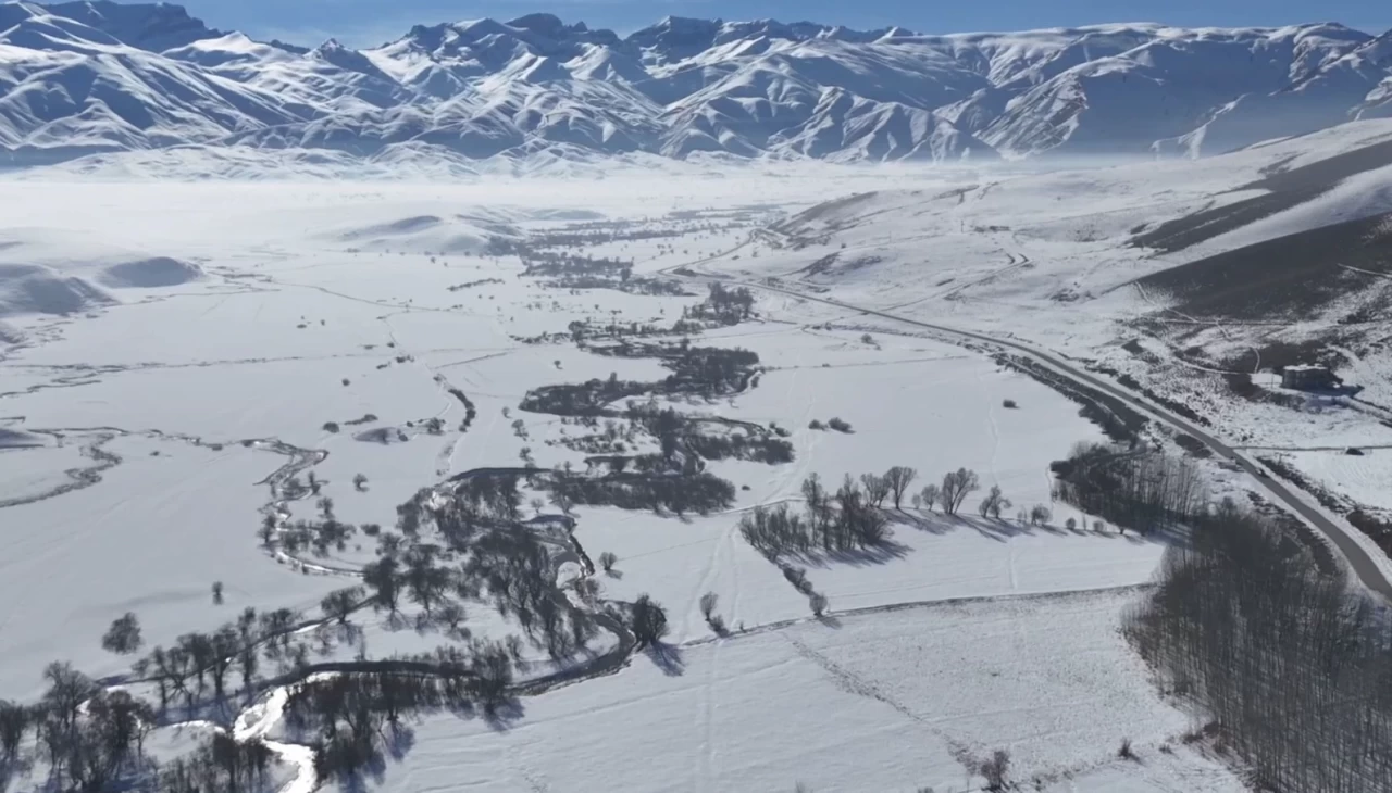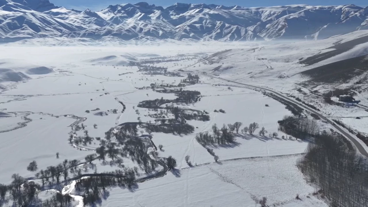 Hakkari’nin Yüksekova ilçesinde de soğuk hava doğayı şekillendirdi. Karla kaplı bölgede kıvrılarak ilerleyen menderesler, dondurucu soğuk nedeniyle buz tuttu. Ağaçların kırağı ile kaplandığı bölge, havadan görüntülendi. Buzla kaplanan akarsular, doğa severlerin ilgisini çekerken, ortaya çıkan manzaralar kışın sert yüzünü bir kez daha gözler önüne serdi.