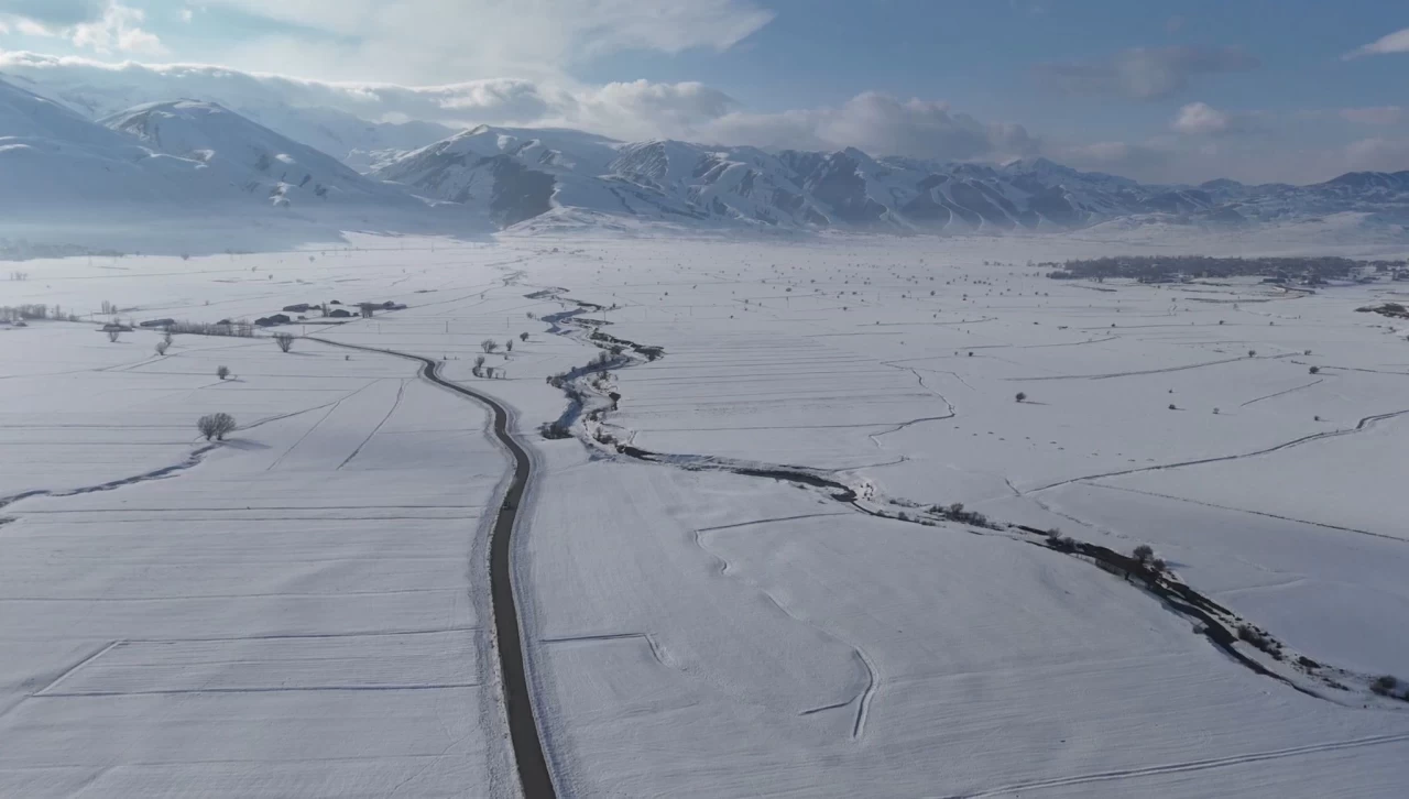 Yüksekova’da Karla Kaplı Menderesler Havadan Görüntülendi