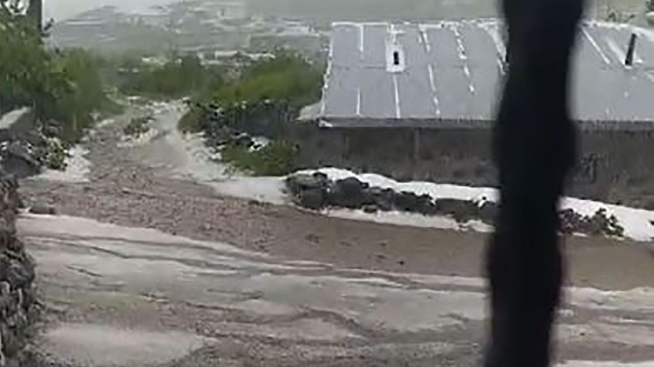 Ardahan’da etkili olan dolu yağışı Samanbeyli köyünü beyaza bürüdü.