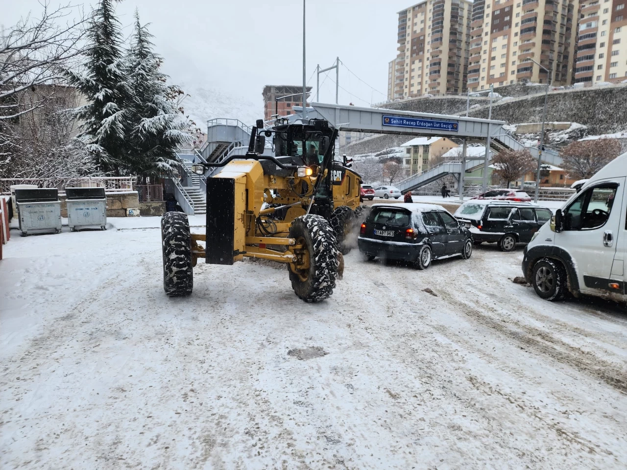 Gümüşhane Belediyesi ekipleri, kar temizleme çalışmalarını aralıksız sürdürüyor. Ana arterler başta olmak üzere mahalle aralarında da kar küreme ve tuzlama çalışmaları devam ediyor.
