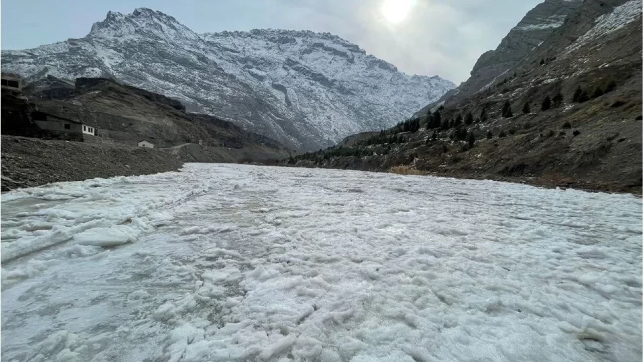 Hakkari’de etkili olan soğuk hava, Zap Suyu’nun yüzeyini kısmen dondurdu. Kalın buz tabakası üzerinde dolaşan vatandaşlar, bu anı ölümsüzleştirmek için hatıra fotoğrafları çekti.