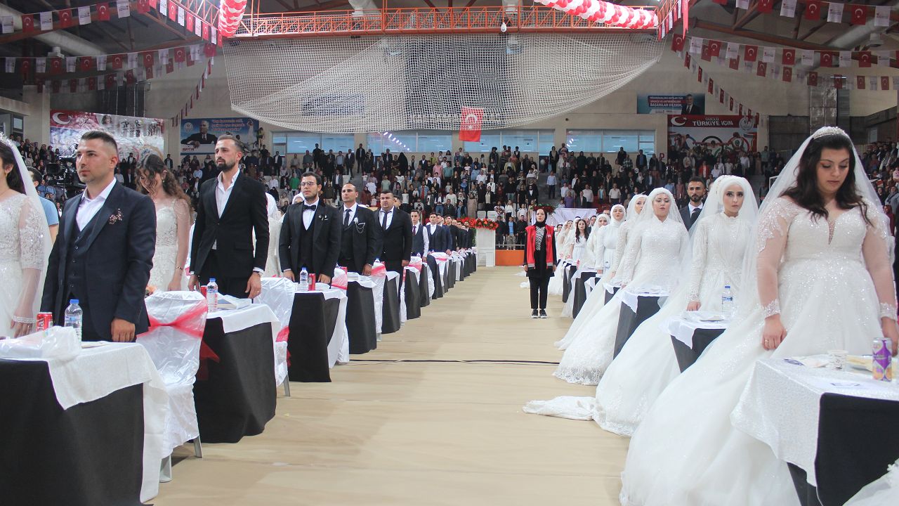 Kahramanmaraş Valisi Mükerrem Ünlüer ise, “100 çiftimizin mutlu günlerine şahitlik etmek üzere burada toplandık. Aile, toplumun en temel taşıdır, sizler güzel bir aile kurarak iyi nesillerin yetişmesine vesile olacaksınız” diye konuştu.