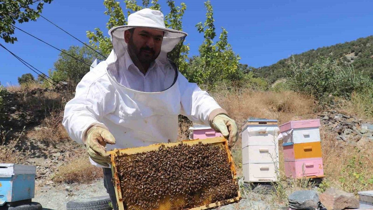 Kavurucu sıcakların arıcılık faaliyetlerini olumsuz etkilediğini belirten Sefa Öztürk, " Hobi olarak yapıyoruz. Arıcılığa ilk 2020 yılında başladık. Sürekli kendisinden bal aldığım bir ağabeyim vardı. Her sene eşe dosta arkadaşlara yüklü miktarda bal alıyordum, çünkü ailecek balı çok seviyoruz. Bir gün kendisine yine bal istediğimi söylediğim de bana, sana bir kovan vereyim yanıma da gel git bu işi öğren kendi balını kendin yap. Öğrenirsin yaparsın bu işi deyince heves ettik. Ondan iki tane kovan aldım, 2020 yılında bir kovanla başladım, şu an 10 tane kovanım var. Kendi balımızı üretiyoruz. Ticari bir faaliyetimiz yok ama bu işi hobi olarak yapıyoruz. Şimdi biz arılarımızı doğal olarak baktığımız, beslediğimiz için fazla bir yüklü miktarda bir hasat alım söz konusu olmuyor. Mesela kovan başı 15 kilo diyebiliriz. 10 tane kovanım var 150 kilo, eğer bu işi doğal yollardan yapmasak ek gıdalarla takviyelerle yapmış olsak miktar ikiye katlar ama biz bundan yana değiliz" dedi.