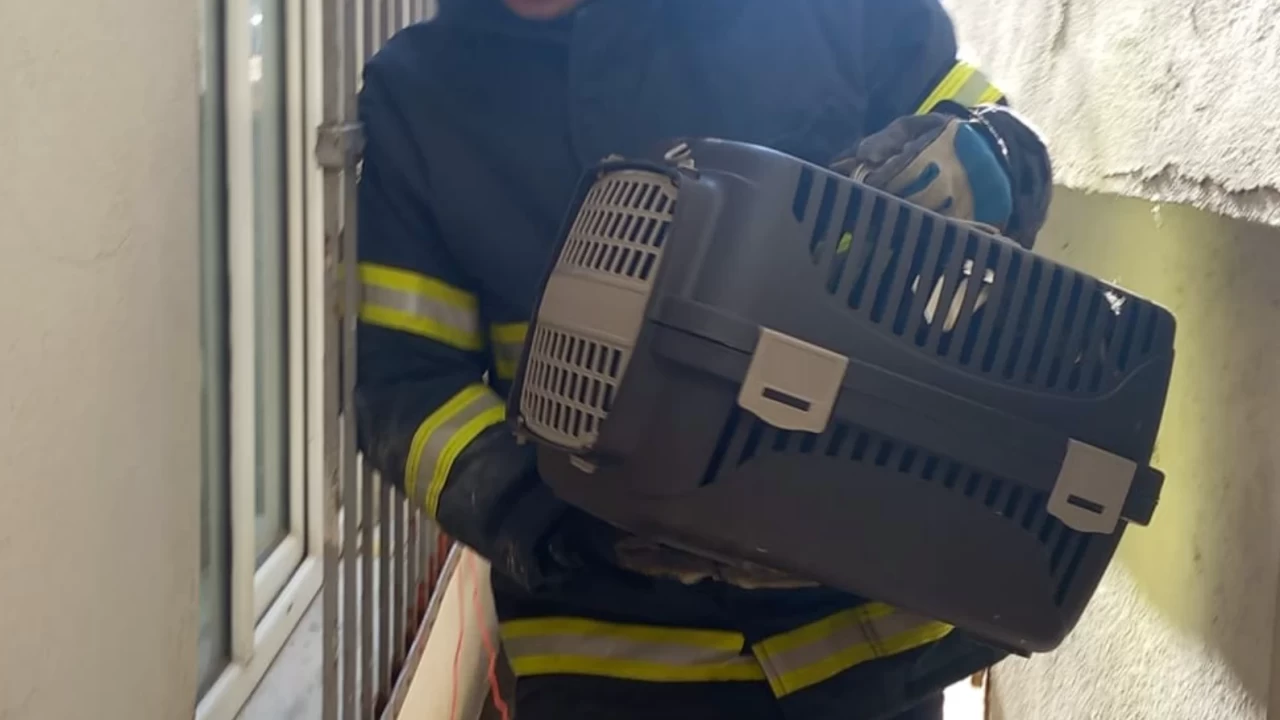 Ordu'da sahipsiz köpeklerden kaçarken iki bina arasındaki boşluğa düşen kedi, itfaiye ekiplerince kurtarıldı.