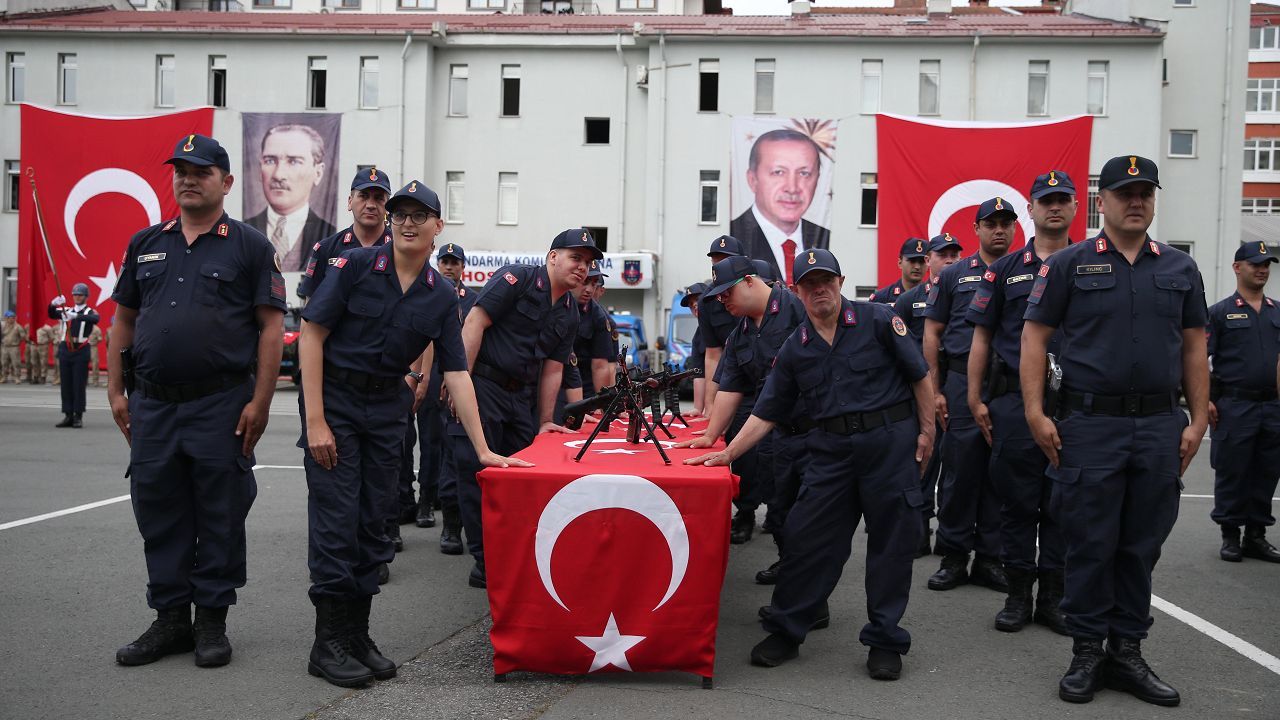 İl Jandarma Komutanlığı bahçesine aileleriyle gelen engelliler, bir günlük eğitim için üniforma giydi. Törende engelliler, Türk bayrağına el basarak yemin etti, bayrak geçişiyle protokolü selamladı.