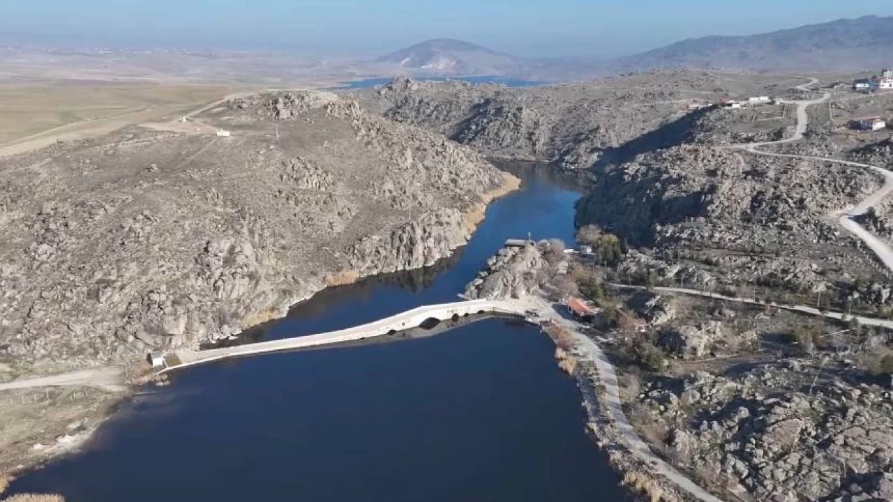 Kırıkkale'de Anadolu Selçuklu dönemine ait Çeşnigir Köprüsü ve çevresindeki Kızılırmak Kanyonu, dron ile havadan görüntülendi.
