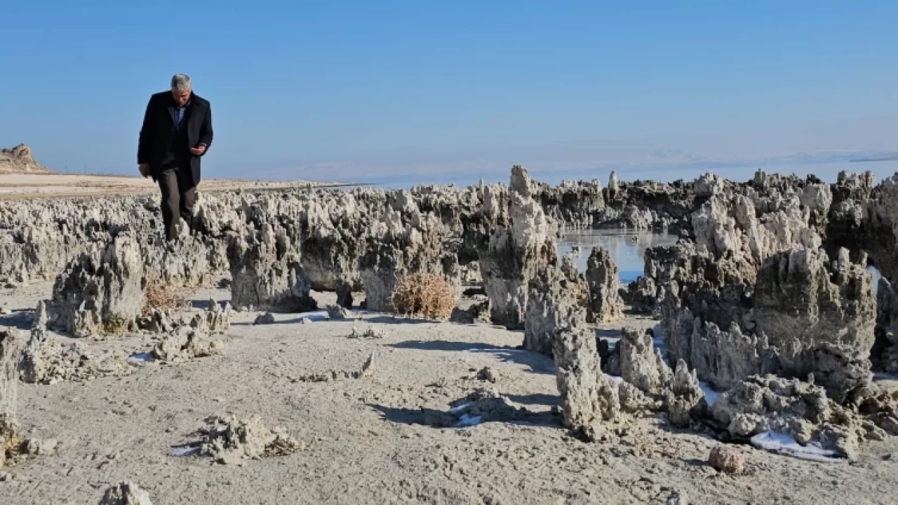 Van Gölü'nün Bitlis’in Adilcevaz ilçesinin kıyı bandında suların çekilmesiyle sahilde yükselen mikrobiyalitler tabloyu gözler önüne seriyor.