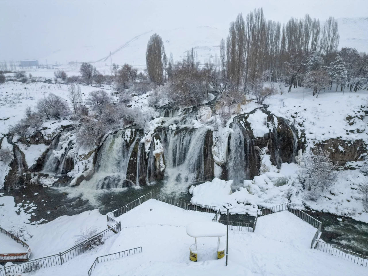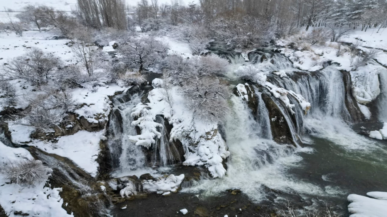 Van’da etkili olan kar yağışı, bölgedeki doğal güzellikleri adeta bir kartpostala çevirdi. Kentin simgelerinden biri olan Muradiye Şelalesi de yoğun yağış sonrası beyaz örtüyle kaplandı.