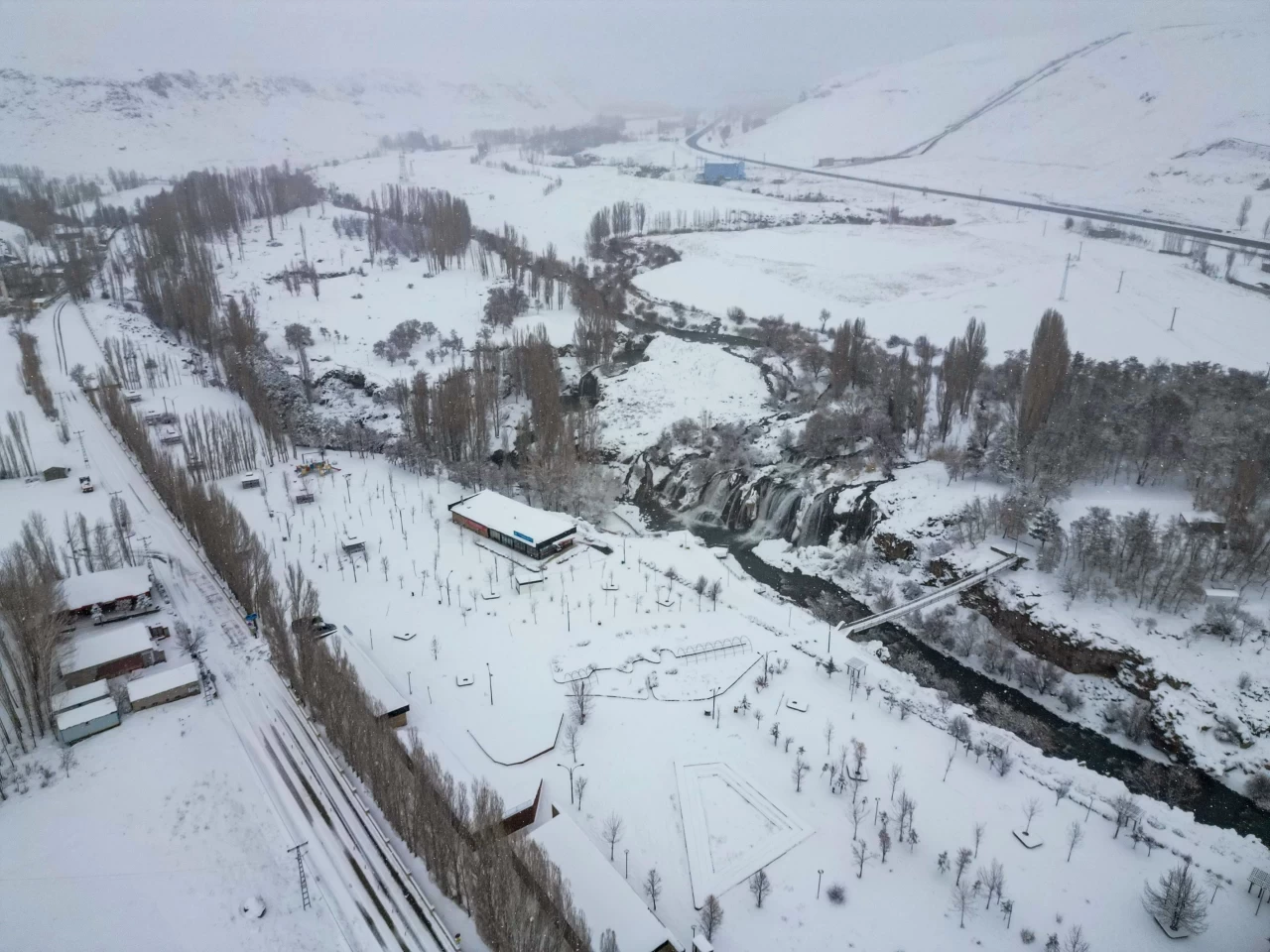 Şelalenin çevresinde bulunan mesire alanı da yoğun kar yağışından nasibini aldı. Kar altında kalan ağaçlar ve yürüyüş yolları, ziyaretçilere farklı bir atmosfer sunuyor.