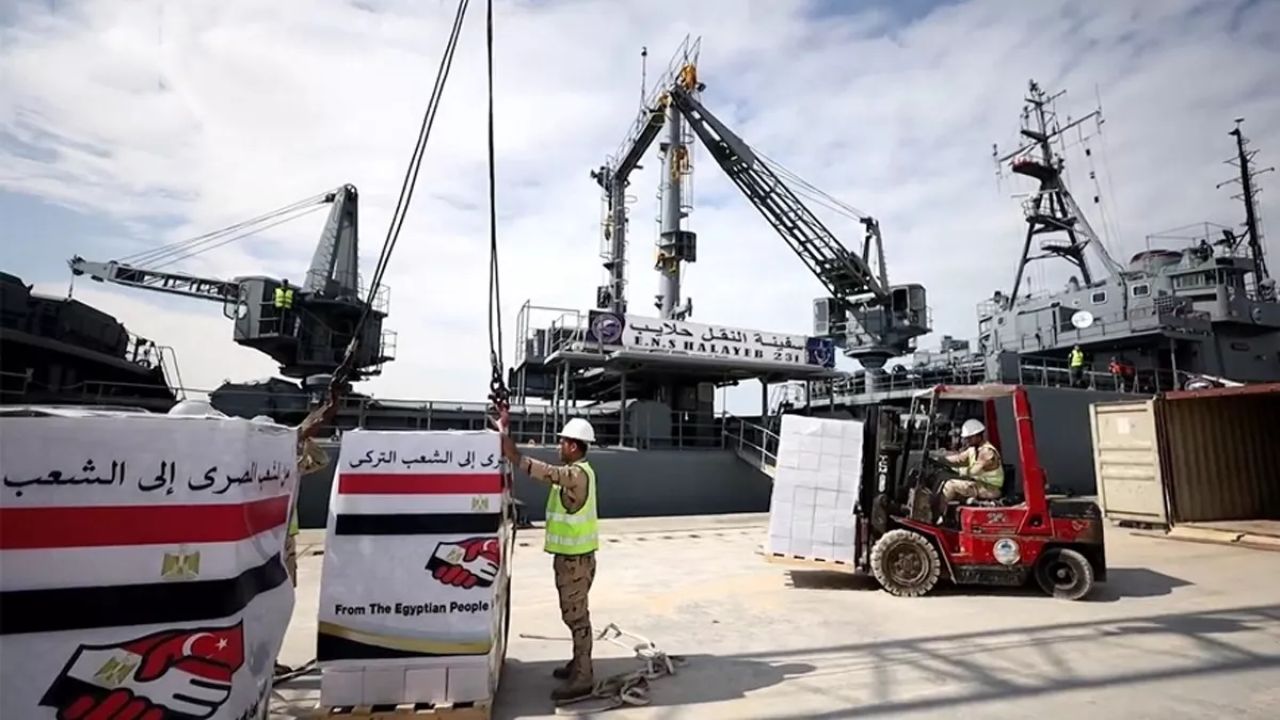 Mısır hükümetinin "asrın felaketi" olarak nitelenen depremlerden etkilenen bölgeler için hazırladığı 650 tonluk yardım malzemesi, askeri gemi "ENS Halayeb" aracılığıyla Mersin Uluslararası Limanı'na ulaştırıldı.